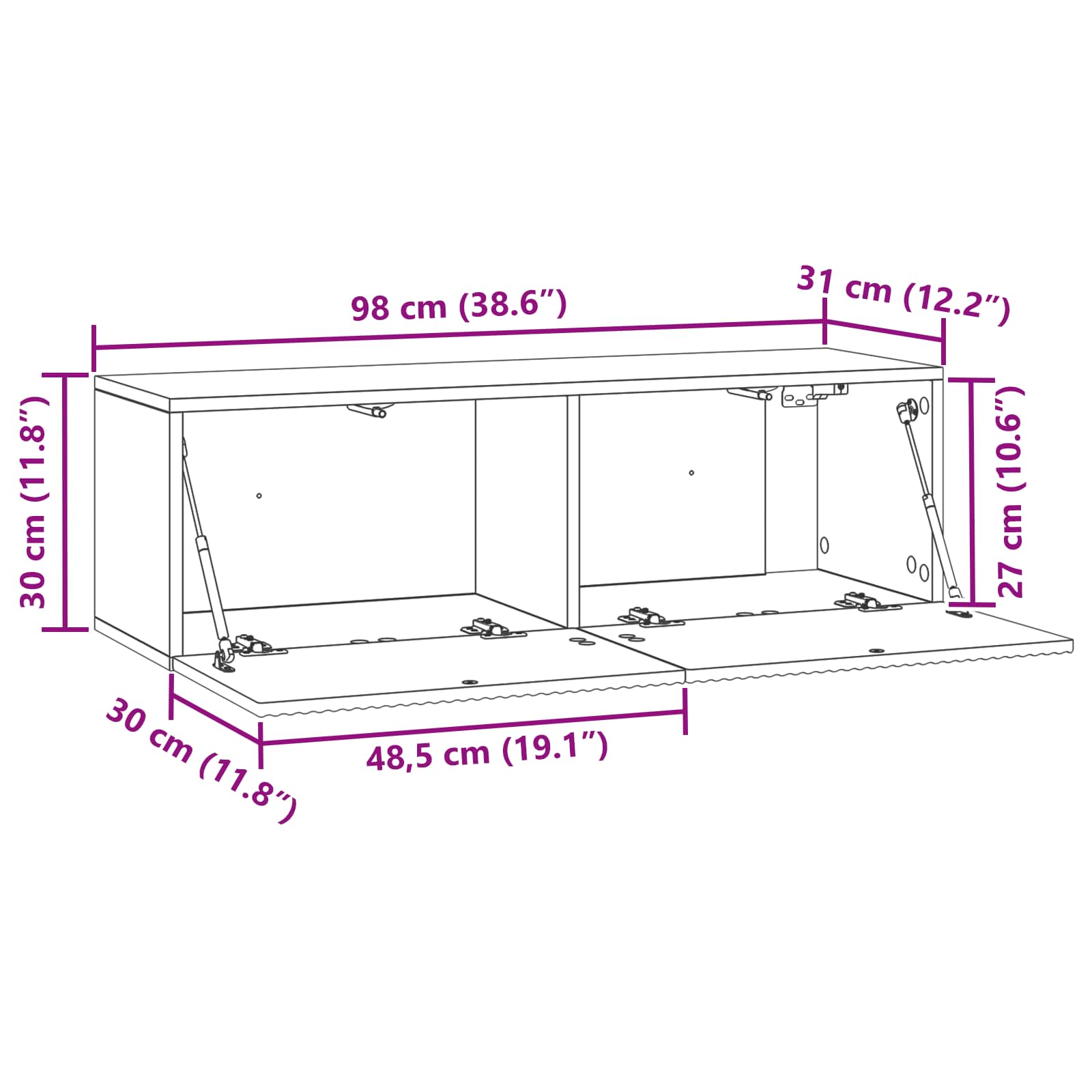 • Yleiset mitat: 98 x 31 x 30 cm (P x L x K)