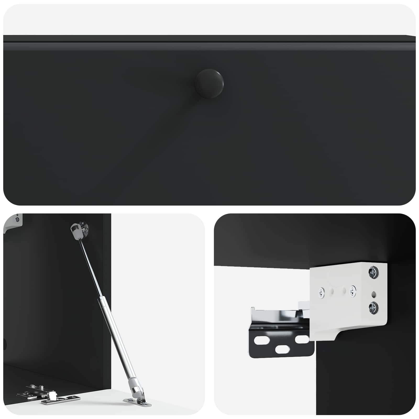 • Toimitettavat osat: 90° kääntyvät saranat ja käytännölliset metallinupit tekevät pääsystä säilytystiloihin vaivatonta. Kaikki osat on suunniteltu niin, että säilytys on helppoa ja siistiä, mikä auttaa luomaan järjestelyyn mukautuvan ulkonäön. Seinäasennus antaa lisää lattiatilaa ja sulautuu kauniisti oleskelualueisiin.
