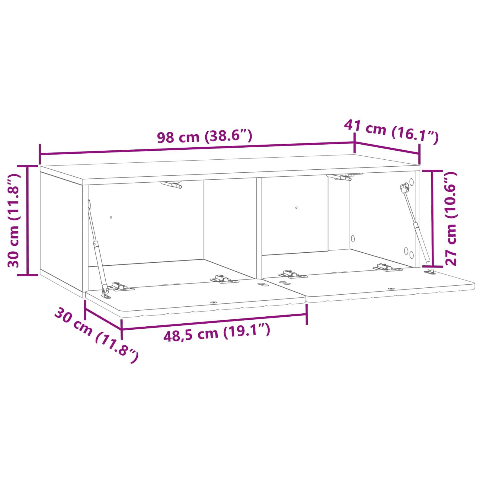 • Yleiset mitat: 98 x 41 x 30 cm (P x L x K)