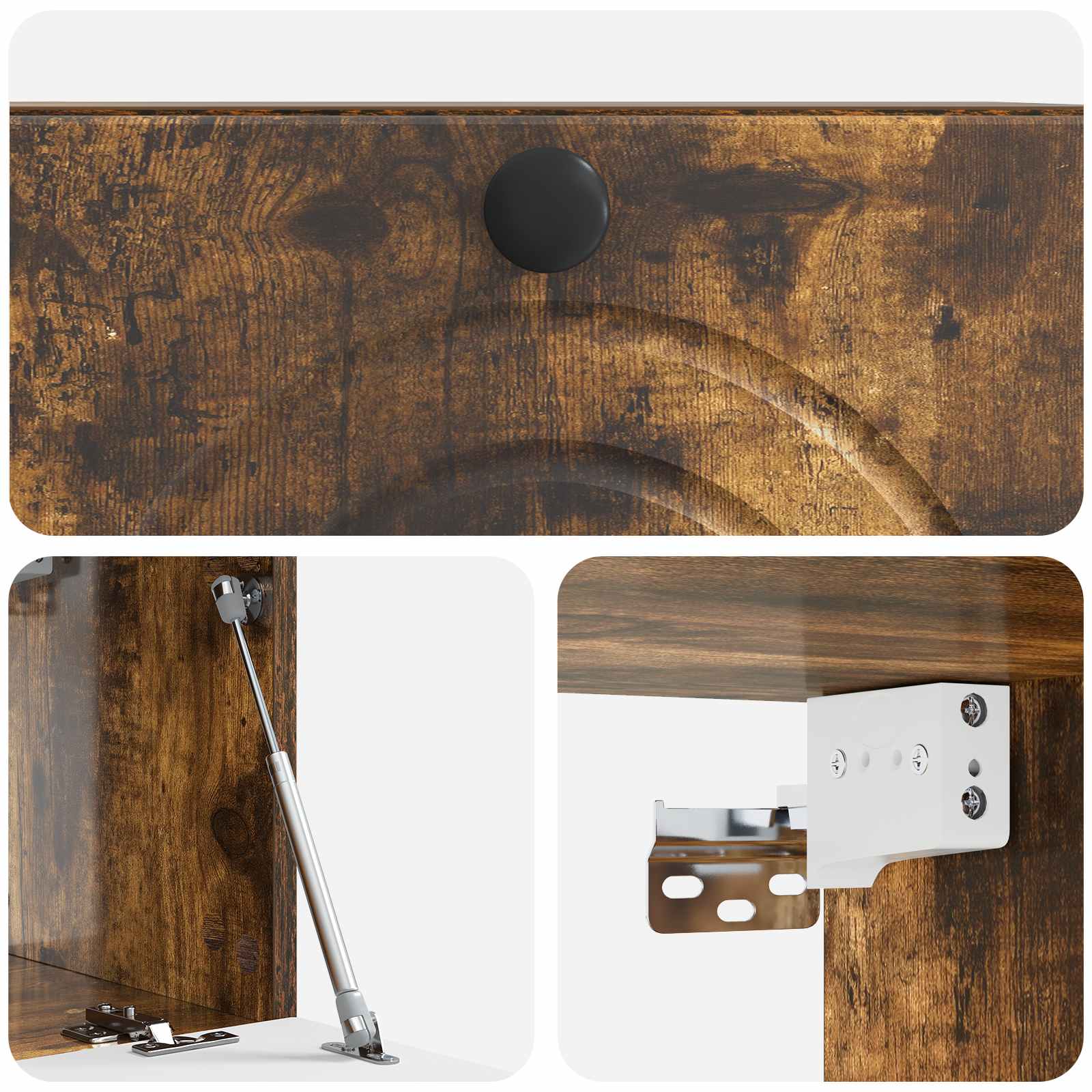 • Paketti sisältää: 90° kääntyvät saranaovet, jotka mahdollistavat helpon pääsyn sisältöön. Kestävästä puusta valmistetut ovet sulautuvat kauniisti muotoiluun. Mustat metallikahvat tuovat käytännöllisyyttä ja tyyliä.