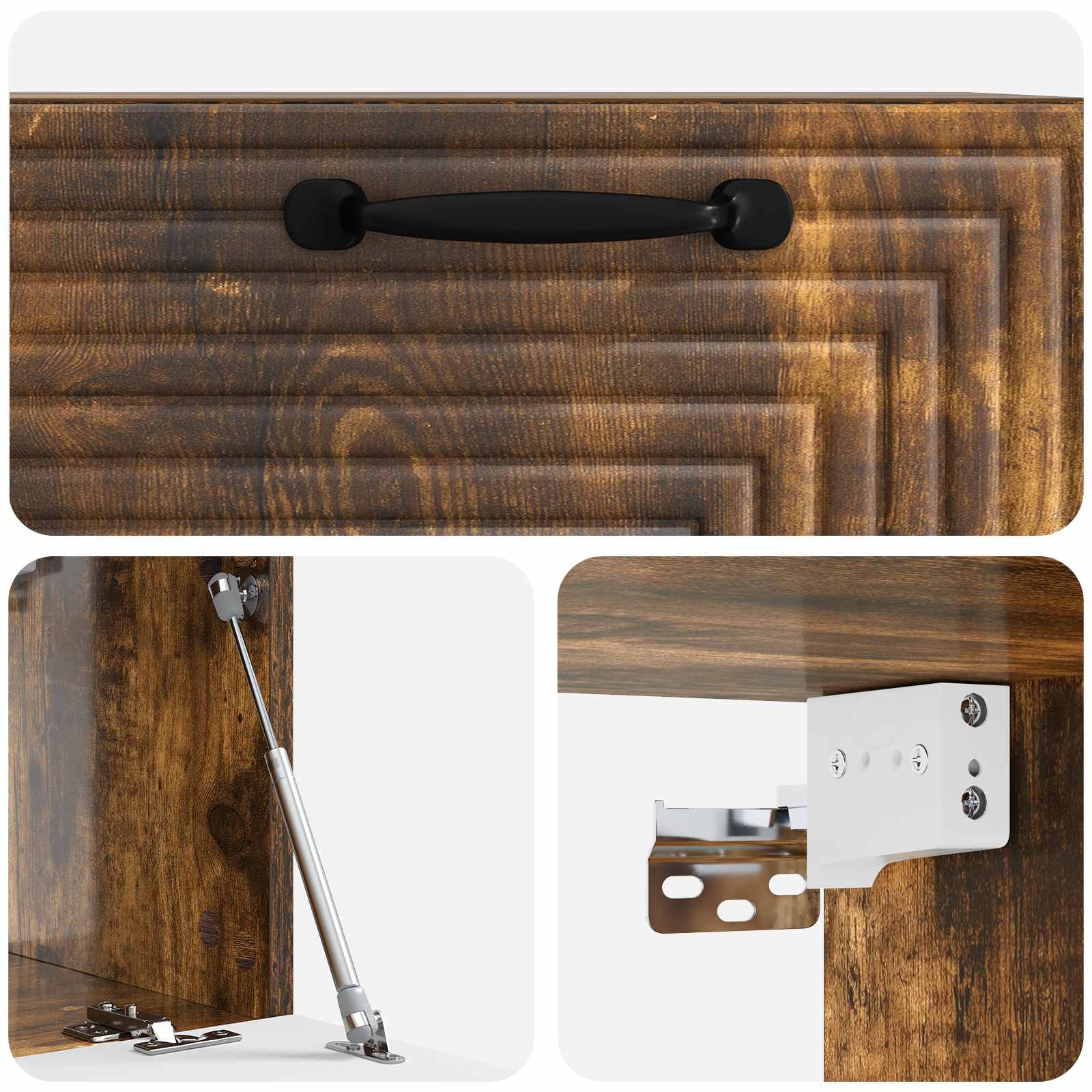 • Toiminnallisuus 90° keinusarnaovet tarjoavat helpon pääsyn sisältöön säilyttäen samalla tyylikkyyden. Tämä kaappi on suunniteltu modernin elämän tarpeita ajatellen.