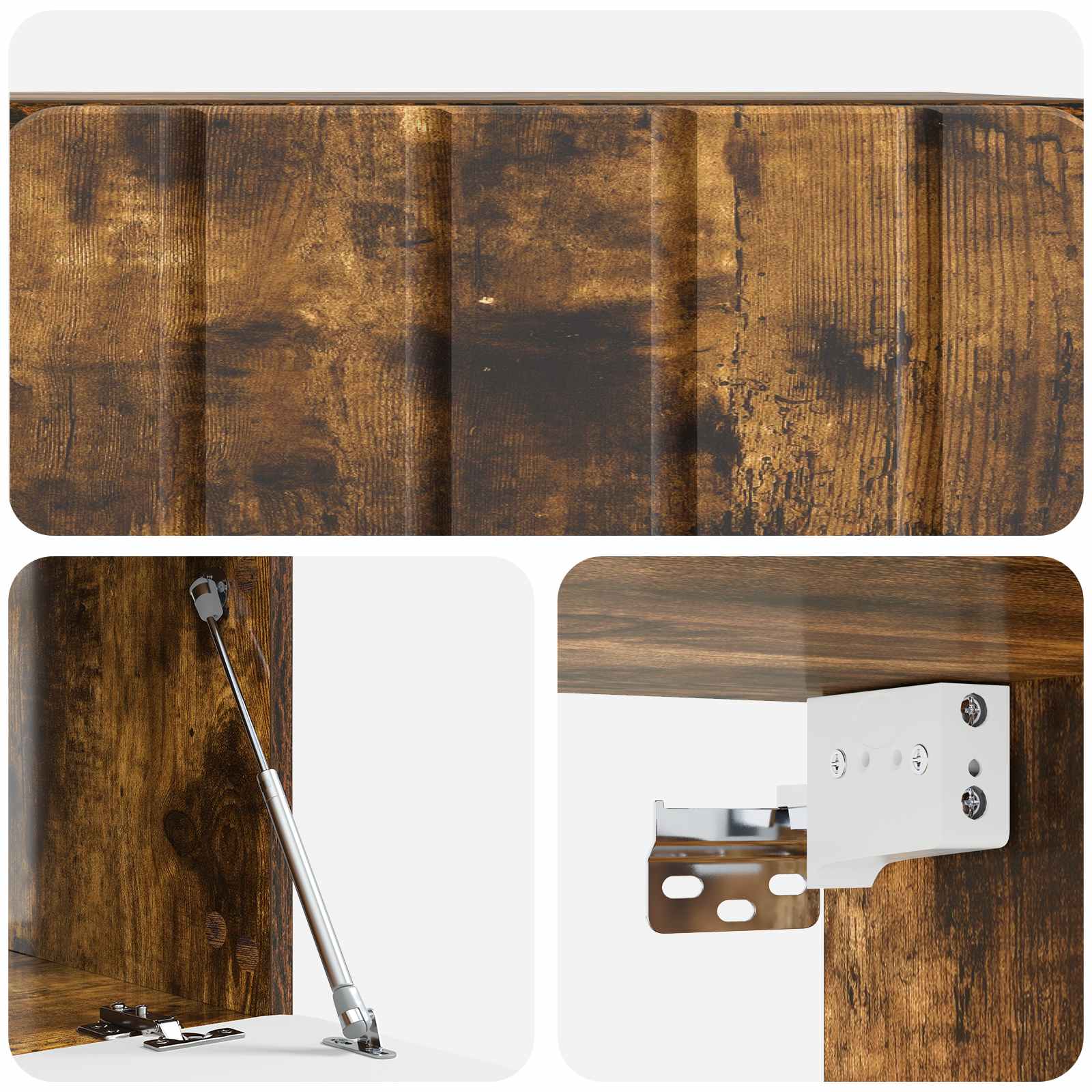 • Valmistettu teknisestä puusta: Tää kaappi näyttää upealta kestävästä teknisestä puusta, joka kestää arjen kulutusta. Sen vankka rakenne tarjoaa puhtaan ja kiiltävän ilmeen, joka sopii monenlaisiin moderneihin sisustuksiin.