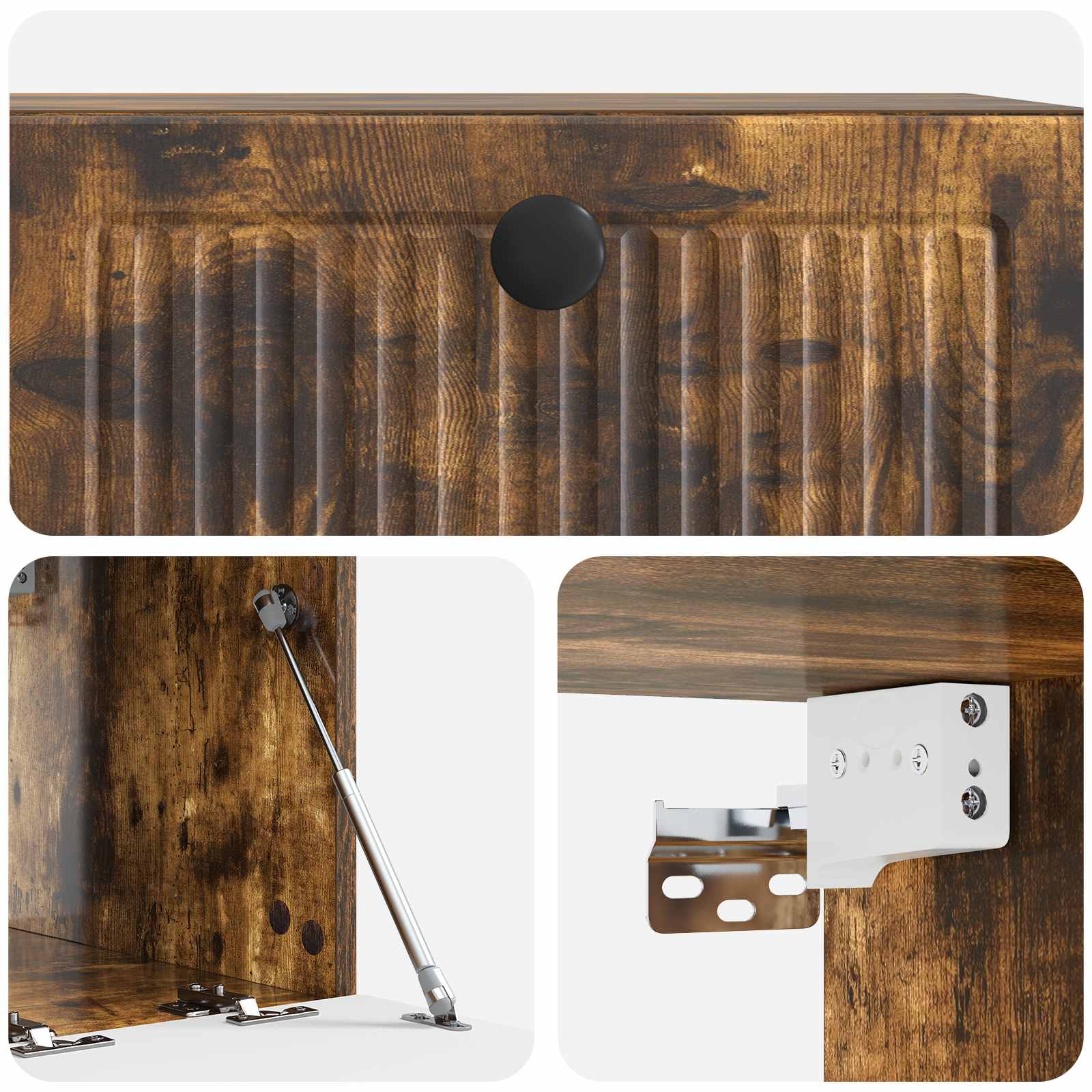 • Helppo seinäkiinnitys: Suunniteltu helppoa asentamista varten, tää kaappi kiinnitetään turvallisesti seinään, säästäen lattiatilaa ja luoden siistin ilmeen. Seuraa ohjeita huolella ja käytä seinätyypille sopivia ankkureita ja ruuveja turvalliseen asennukseen.