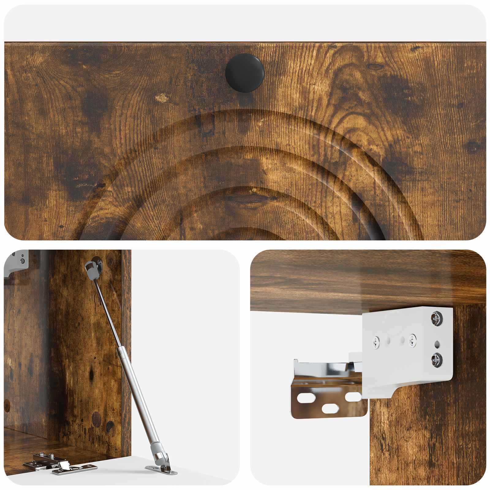 • Paketti sisältää: 90° kääntyvät saranaovet, jotka mahdollistavat helpon pääsyn sisältöön. Kestävästä puusta valmistetut ovet sulautuvat kauniisti muotoiluun. Mustat metallikahvat tuovat käytännöllisyyttä ja tyyliä.
