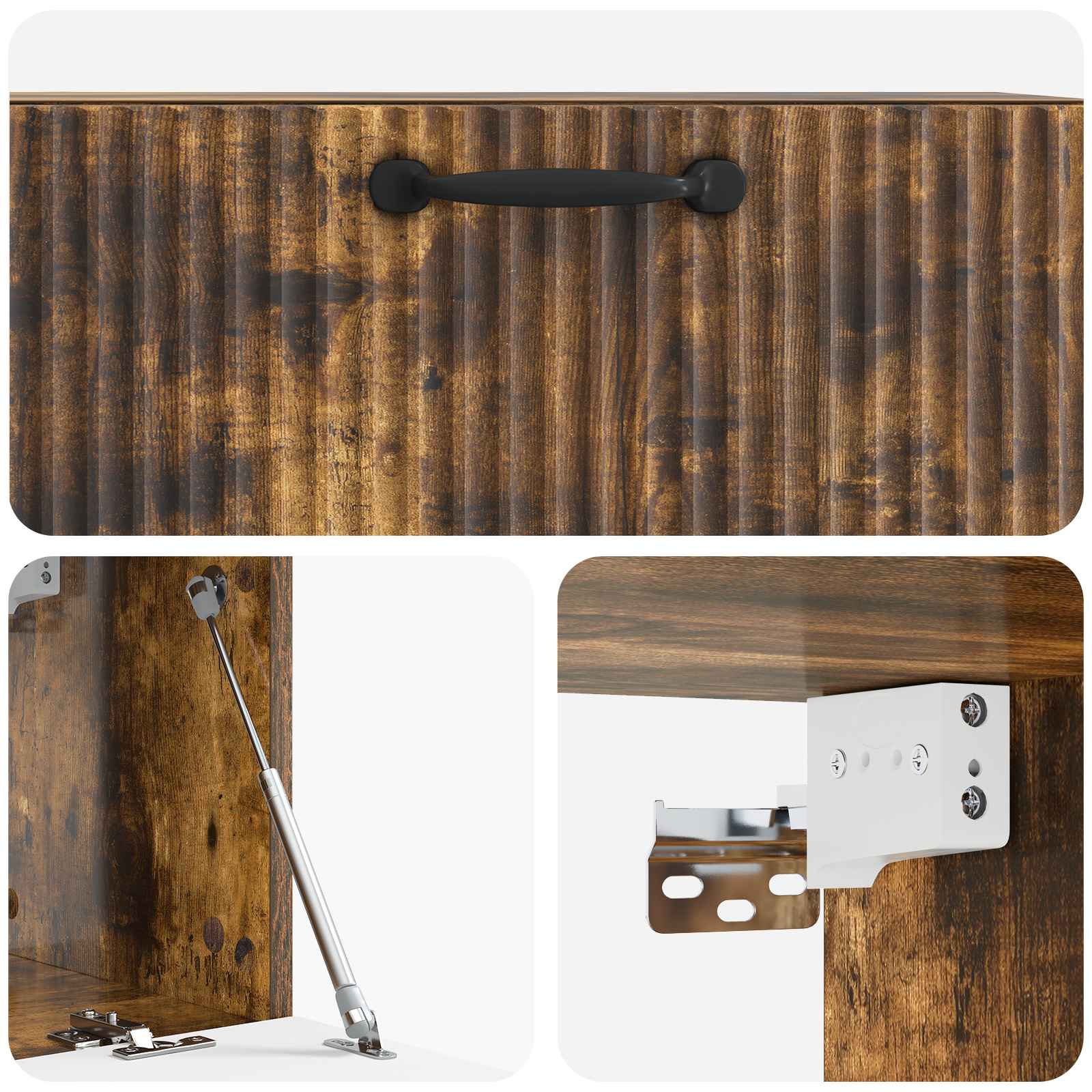 • Toiminnalliset 90° kiertosaranat: Kaapissa on kätevät 90° kiertosaranat, jotka helpottavat pääsyä säilytettävään tavaraan. Nämä ovet on rakennettu käytettäväksi helposti, säilyttäen tyylikkään ilmeen.