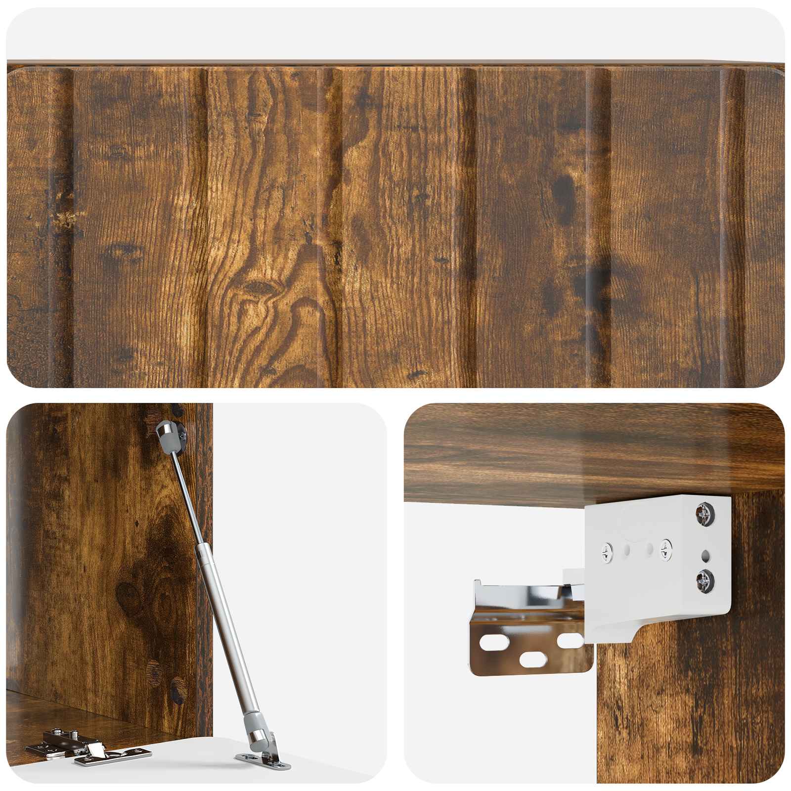 • Valmistettu teknisestä puusta: Tää kaappi näyttää upealta kestävästä teknisestä puusta, joka kestää arjen kulutusta. Sen vankka rakenne tarjoaa puhtaan ja kiiltävän ilmeen, joka sopii monenlaisiin moderneihin sisustuksiin.