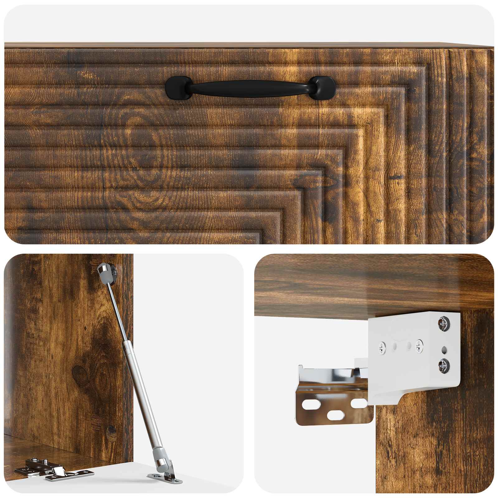 • Toiminnallisuus 90° keinusarnaovet tarjoavat helpon pääsyn sisältöön säilyttäen samalla tyylikkyyden. Tämä kaappi on suunniteltu modernin elämän tarpeita ajatellen.