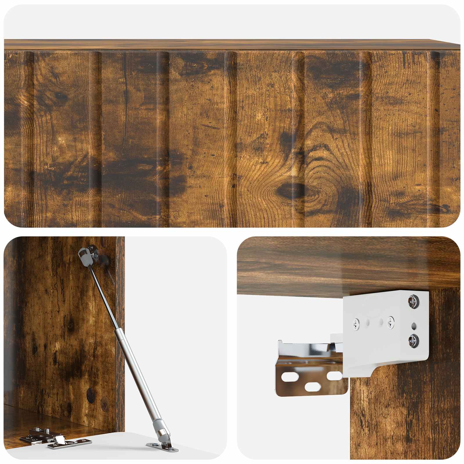 • Valmistettu teknisestä puusta: Tää kaappi näyttää upealta kestävästä teknisestä puusta, joka kestää arjen kulutusta. Sen vankka rakenne tarjoaa puhtaan ja kiiltävän ilmeen, joka sopii monenlaisiin moderneihin sisustuksiin.