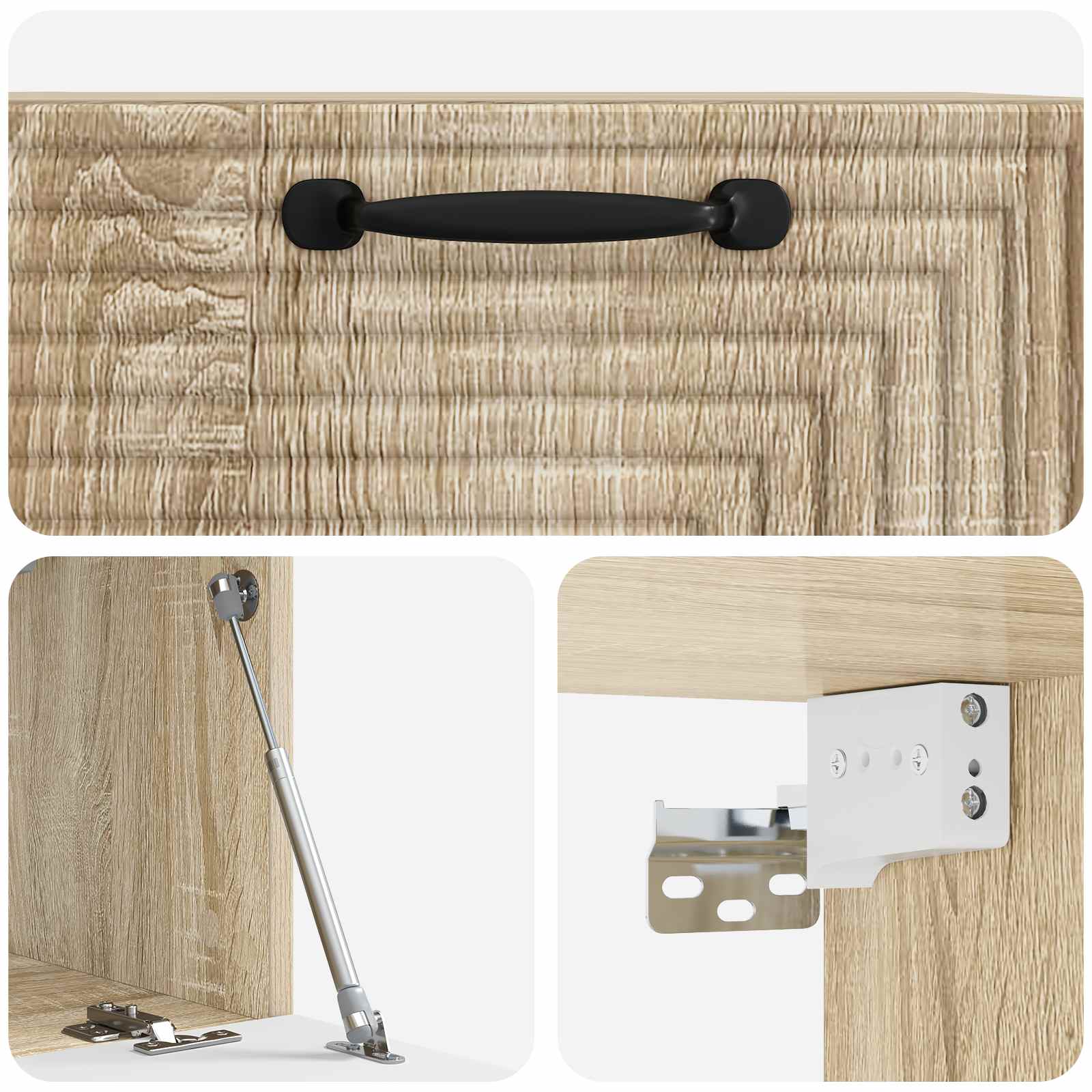 • Toiminnallisuus 90° keinusarnaovet tarjoavat helpon pääsyn sisältöön säilyttäen samalla tyylikkyyden. Tämä kaappi on suunniteltu modernin elämän tarpeita ajatellen.