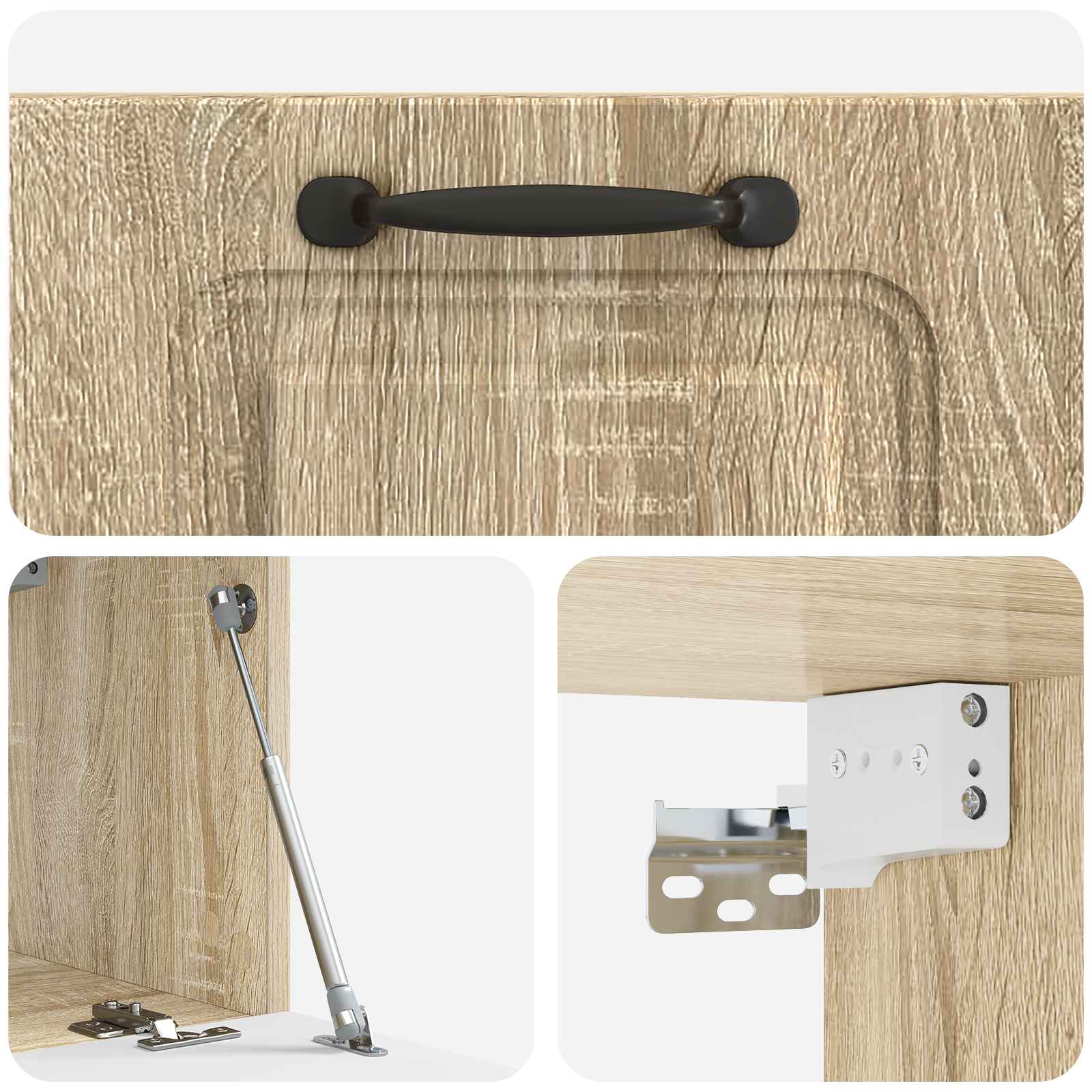 • Monikäyttöiset säilytysmahdollisuudet: Monipuoliset hyllyt ja osastot tarjoavat runsaasti tilaa mediatoistimille, pelikonsoleille ja tarvikkeille. Jokainen hylly on fiksusti sijoitettu, ja tavarat pysyy järjestyksessä. Osastot pitää sun tavarat piilossa ja siististi, mikä tekee siitä hyvän valinnan siistin olohuoneen ylläpitämiseen.