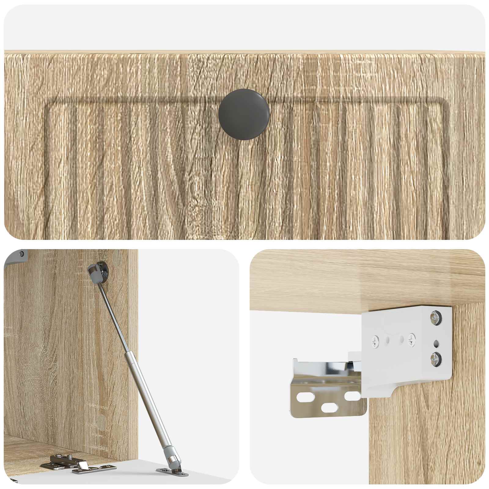 • Helppo seinäkiinnitys: Suunniteltu helppoa asentamista varten, tää kaappi kiinnitetään turvallisesti seinään, säästäen lattiatilaa ja luoden siistin ilmeen. Seuraa ohjeita huolella ja käytä seinätyypille sopivia ankkureita ja ruuveja turvalliseen asennukseen.