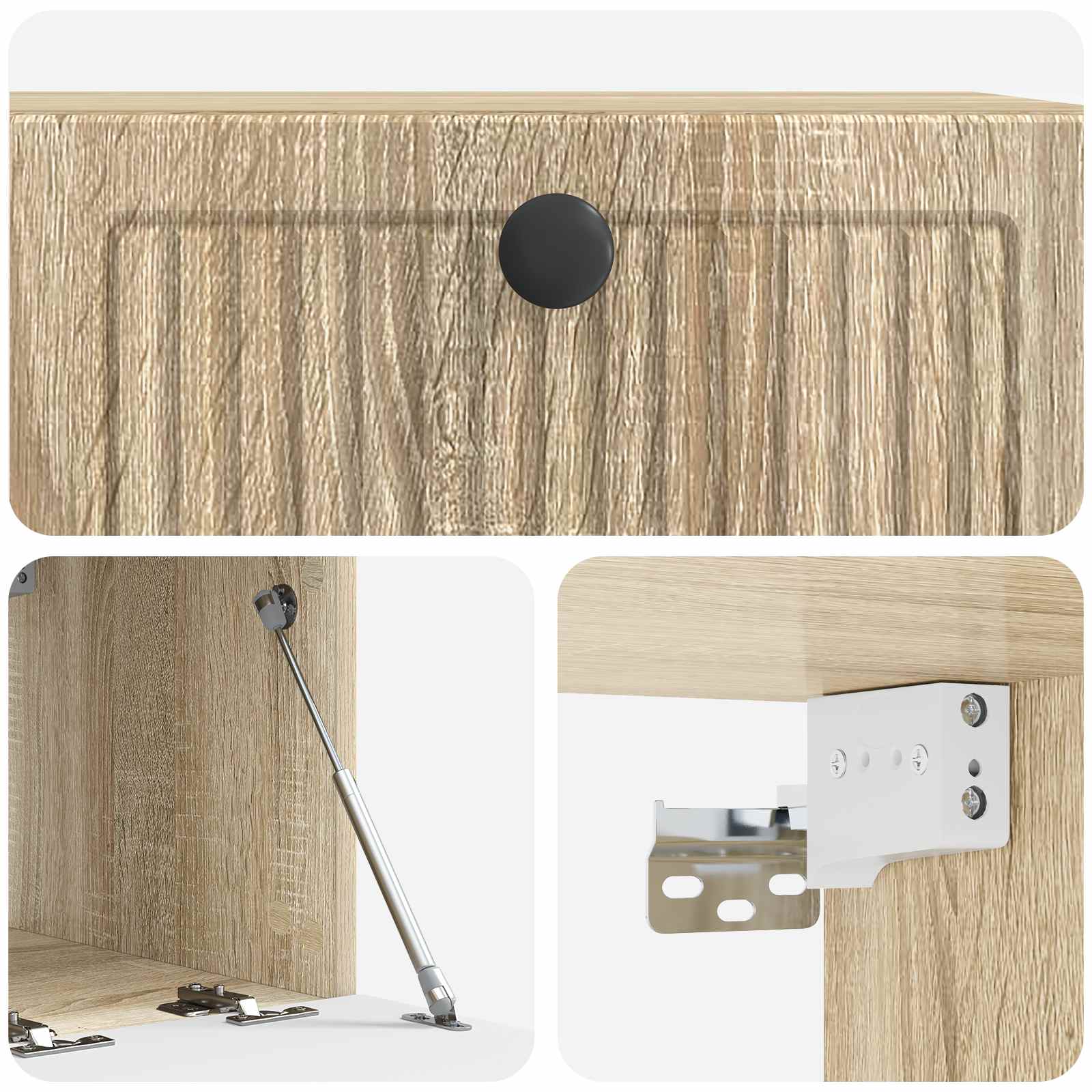 • Helppo seinäkiinnitys: Suunniteltu helppoa asentamista varten, tää kaappi kiinnitetään turvallisesti seinään, säästäen lattiatilaa ja luoden siistin ilmeen. Seuraa ohjeita huolella ja käytä seinätyypille sopivia ankkureita ja ruuveja turvalliseen asennukseen.