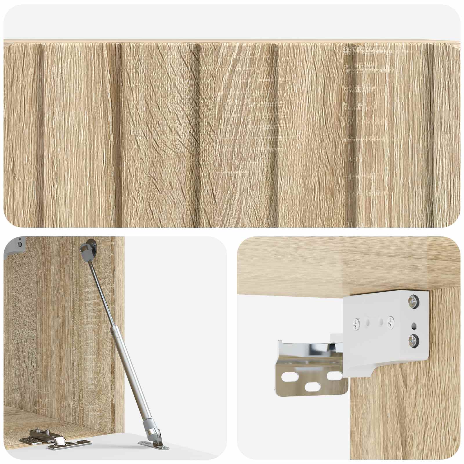 • Joustava 90° avautuva ovi: Ovet avautuu 90° kulmassa, niin pääset helposti käsiksi säilytettäviin esineisiin, mikä tekee käyttämisestä sujuvampaa. Tää juttu parantaa kaapin käytännöllisyyttä todella paljon.