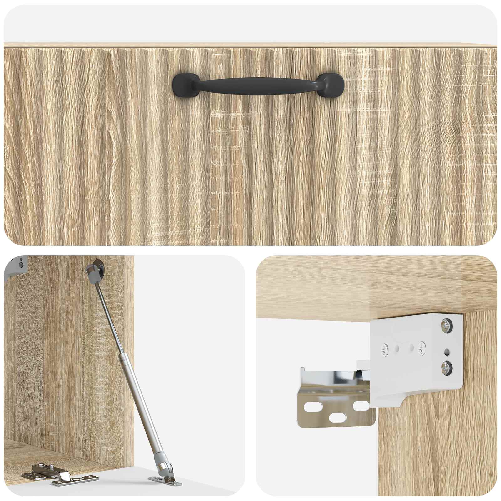 • Tyylikkäät mustat tankokahvat: Jokaisessa ovessa on pitkät mustat tankokahvat, jotka tuovat modernia eleganssia. Nämä kahvat parantavat kaapin ulkonäköä ja tekevät siitä helppokäyttöisen.