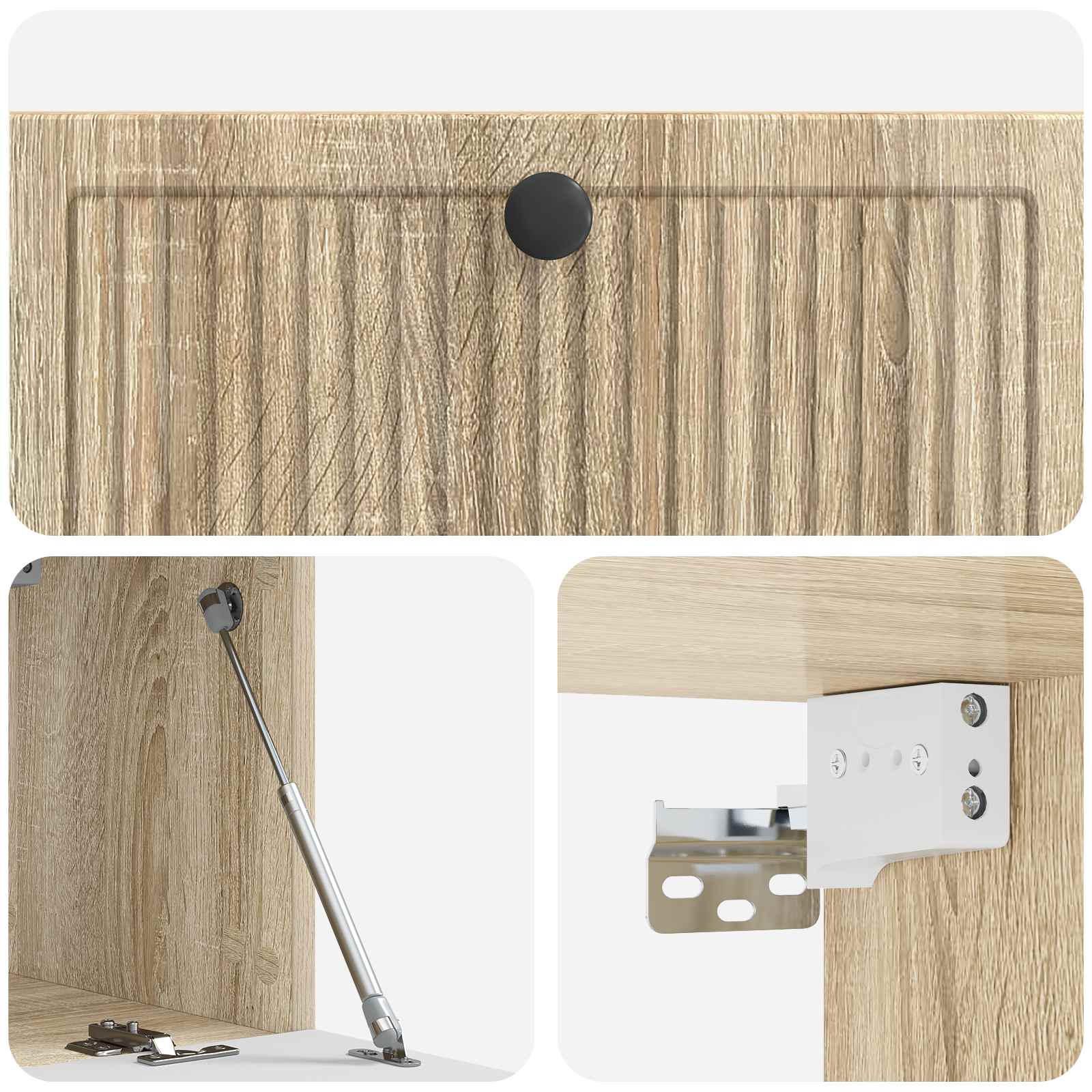 • Helppo seinäkiinnitys: Suunniteltu helppoa asentamista varten, tää kaappi kiinnitetään turvallisesti seinään, säästäen lattiatilaa ja luoden siistin ilmeen. Seuraa ohjeita huolella ja käytä seinätyypille sopivia ankkureita ja ruuveja turvalliseen asennukseen.
