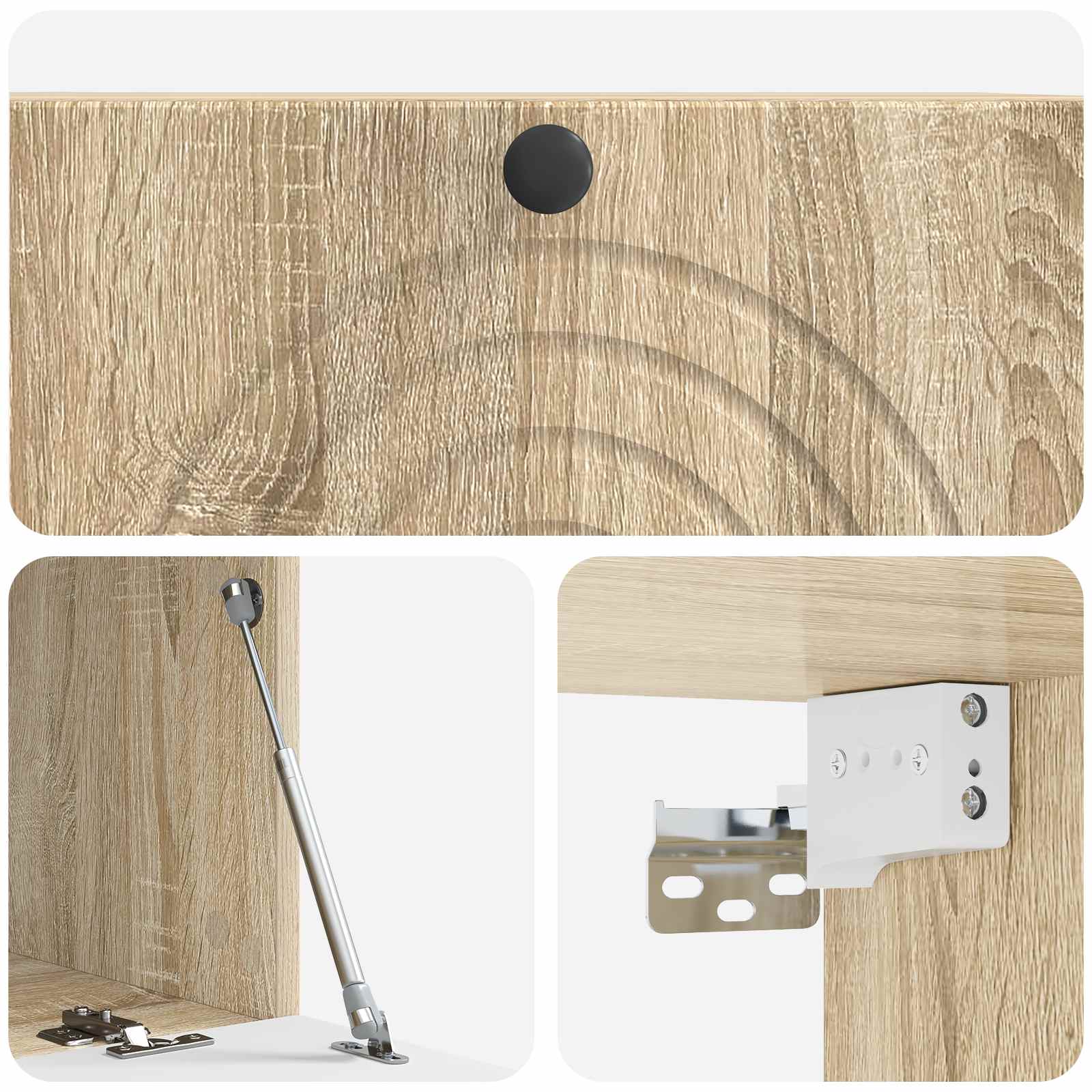 • Paketti sisältää: 90° kääntyvät saranaovet, jotka mahdollistavat helpon pääsyn sisältöön. Kestävästä puusta valmistetut ovet sulautuvat kauniisti muotoiluun. Mustat metallikahvat tuovat käytännöllisyyttä ja tyyliä.