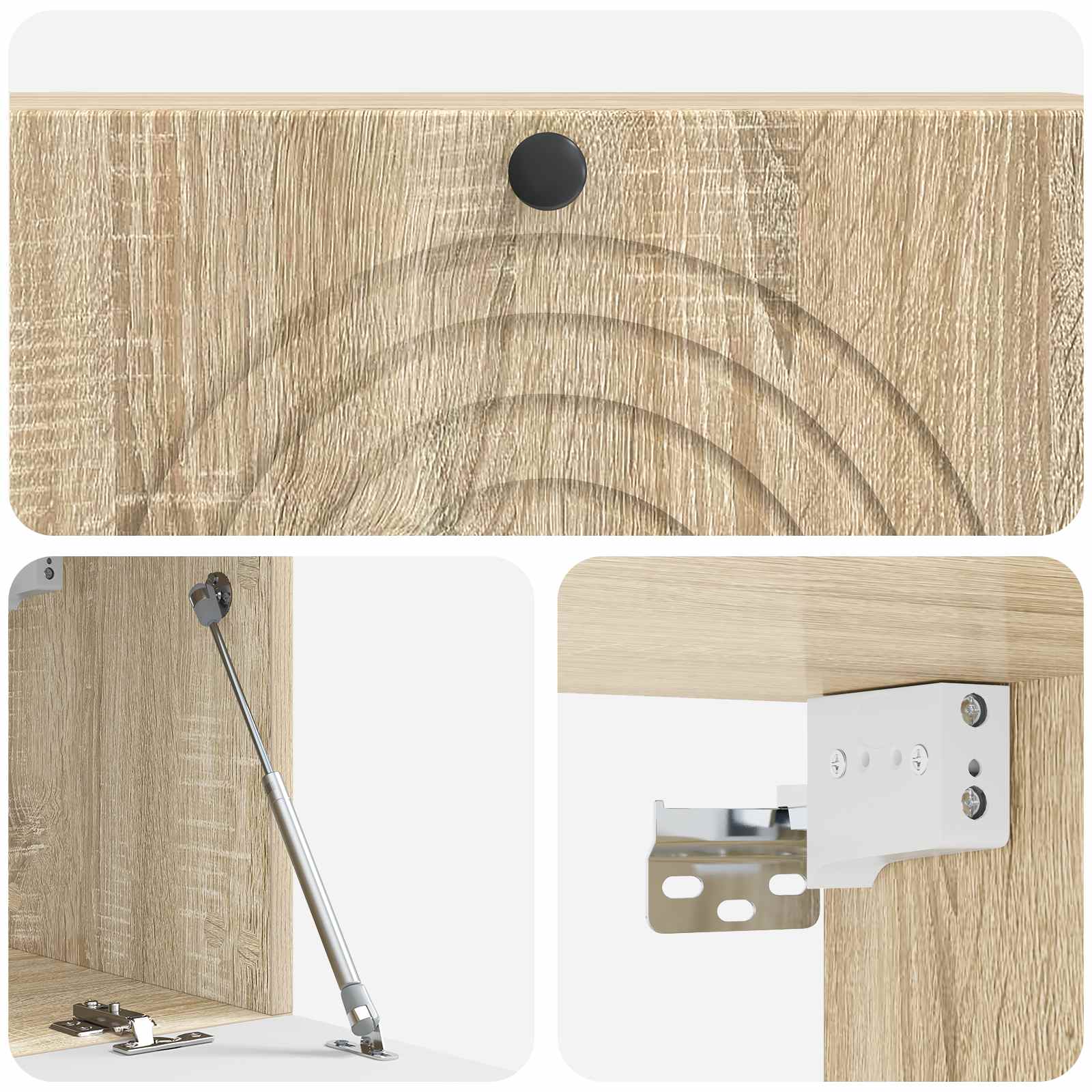 • Paketti sisältää: 90° kääntyvät saranaovet, jotka mahdollistavat helpon pääsyn sisältöön. Kestävästä puusta valmistetut ovet sulautuvat kauniisti muotoiluun. Mustat metallikahvat tuovat käytännöllisyyttä ja tyyliä.