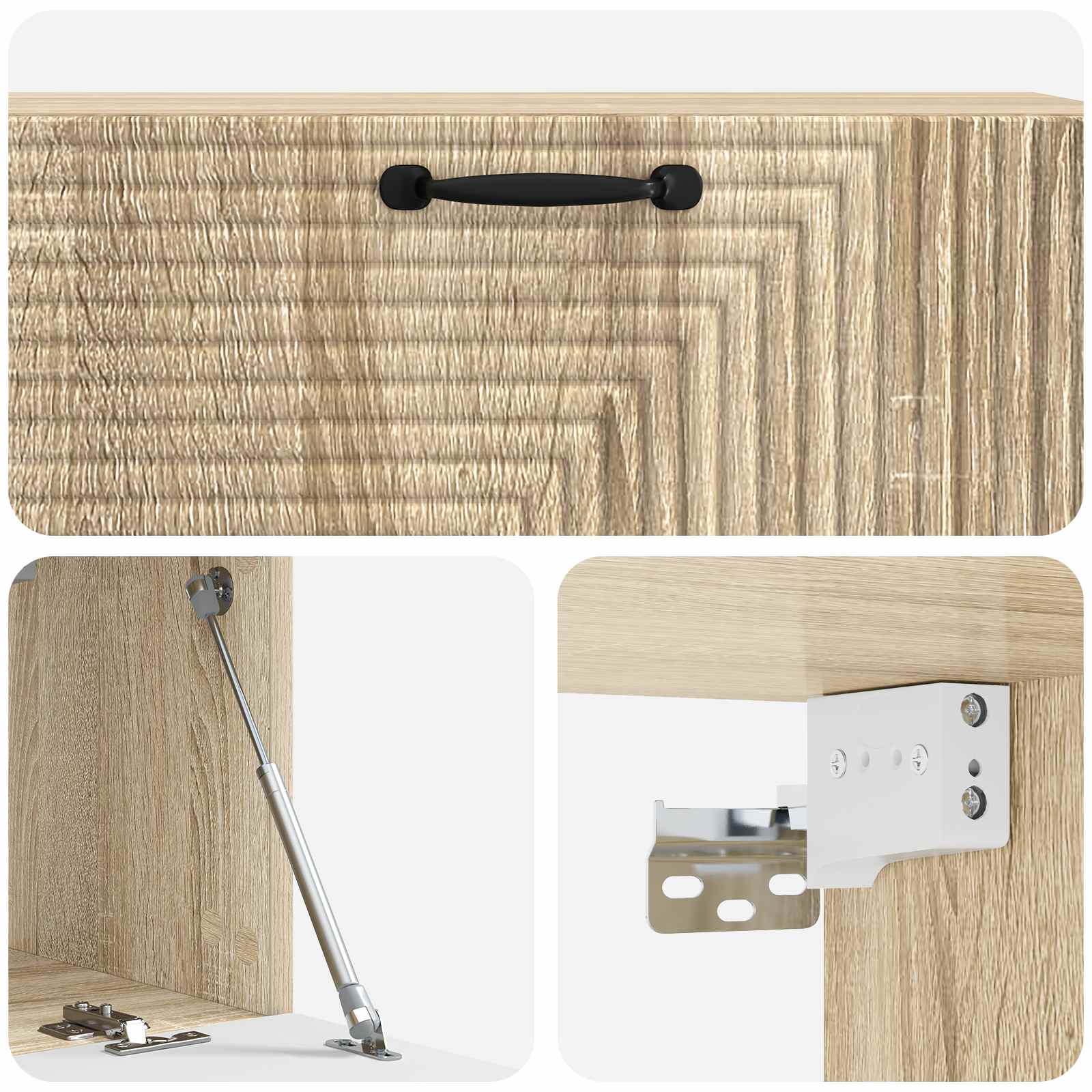 • Toiminnallisuus 90° keinusarnaovet tarjoavat helpon pääsyn sisältöön säilyttäen samalla tyylikkyyden. Tämä kaappi on suunniteltu modernin elämän tarpeita ajatellen.