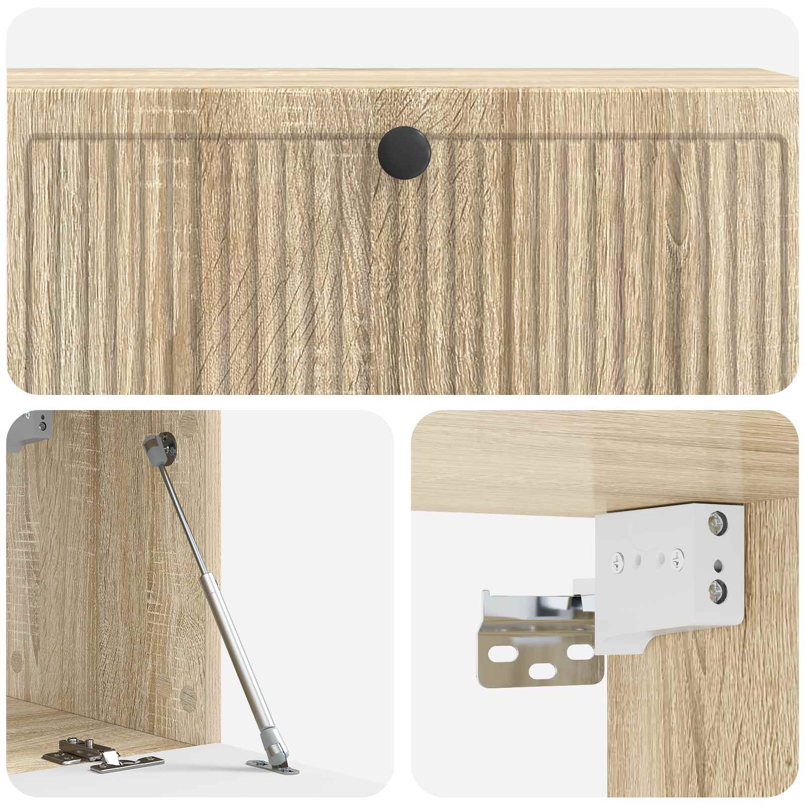 • Helppo seinäkiinnitys: Suunniteltu helppoa asentamista varten, tää kaappi kiinnitetään turvallisesti seinään, säästäen lattiatilaa ja luoden siistin ilmeen. Seuraa ohjeita huolella ja käytä seinätyypille sopivia ankkureita ja ruuveja turvalliseen asennukseen.
