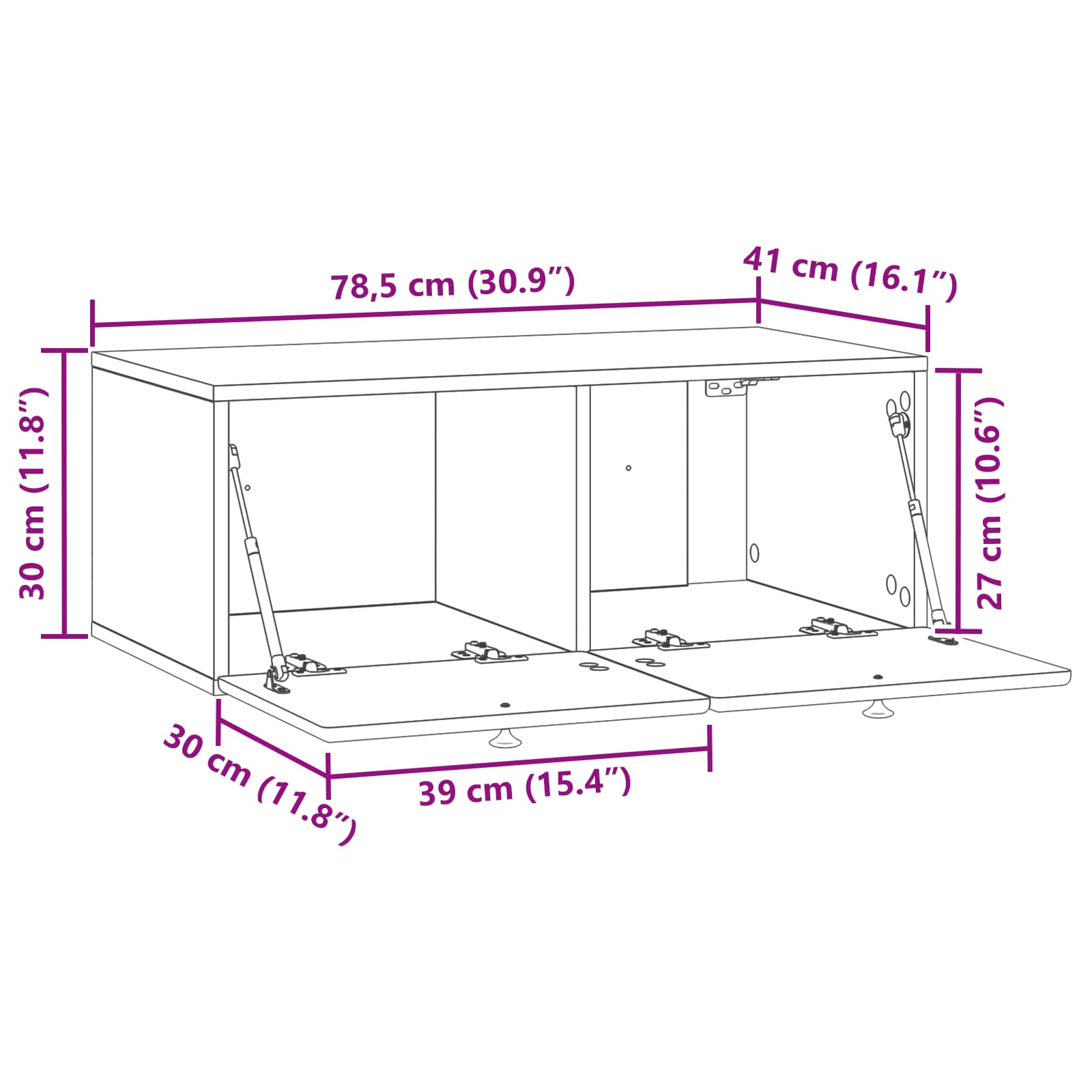• Yleiset mitat: 78,5 x 41 x 30 cm (P x L x K)