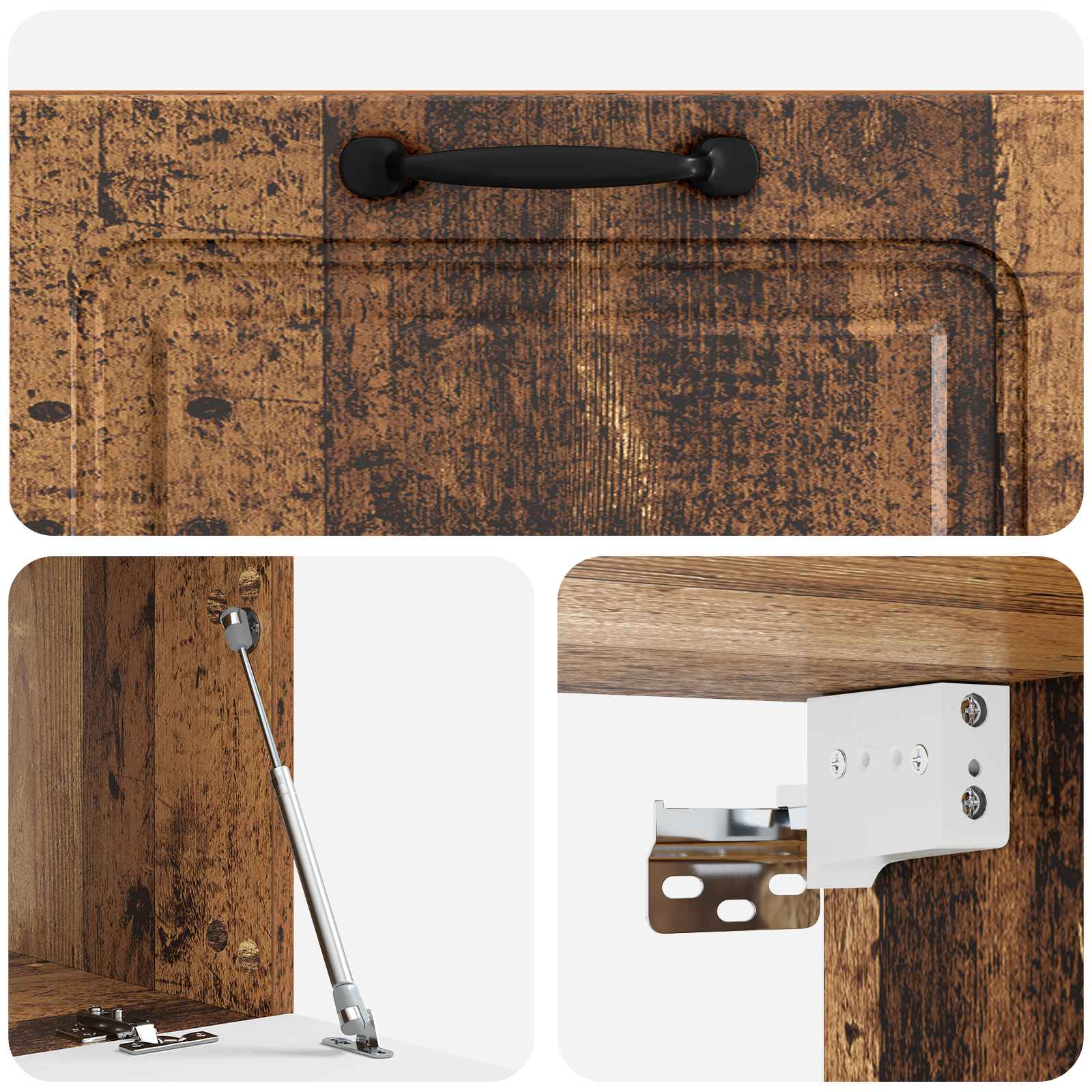 • Monikäyttöiset säilytysmahdollisuudet: Monipuoliset hyllyt ja osastot tarjoavat runsaasti tilaa mediatoistimille, pelikonsoleille ja tarvikkeille. Jokainen hylly on fiksusti sijoitettu, ja tavarat pysyy järjestyksessä. Osastot pitää sun tavarat piilossa ja siististi, mikä tekee siitä hyvän valinnan siistin olohuoneen ylläpitämiseen.