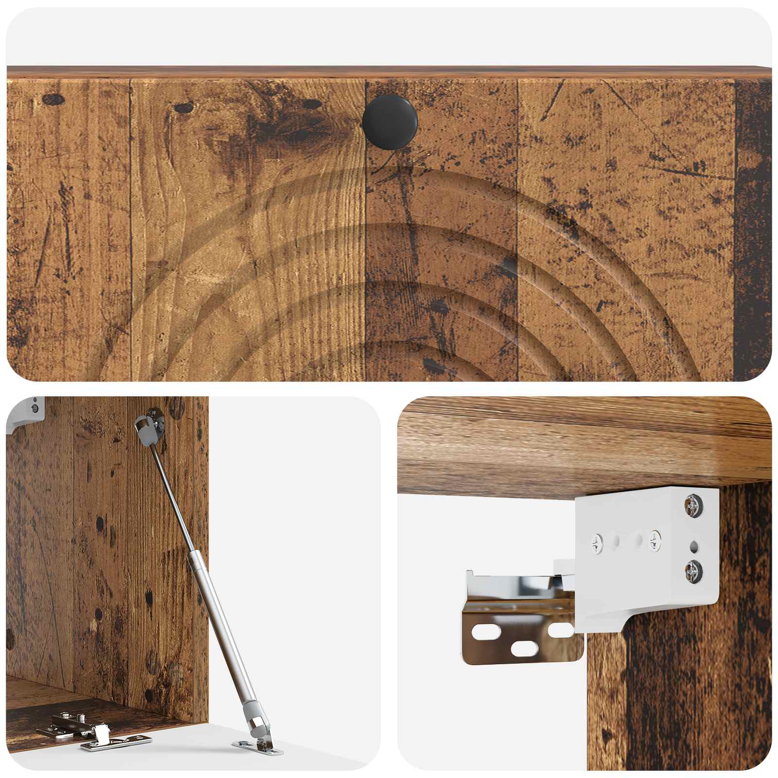 • Paketti sisältää: 90° kääntyvät saranaovet, jotka mahdollistavat helpon pääsyn sisältöön. Kestävästä puusta valmistetut ovet sulautuvat kauniisti muotoiluun. Mustat metallikahvat tuovat käytännöllisyyttä ja tyyliä.