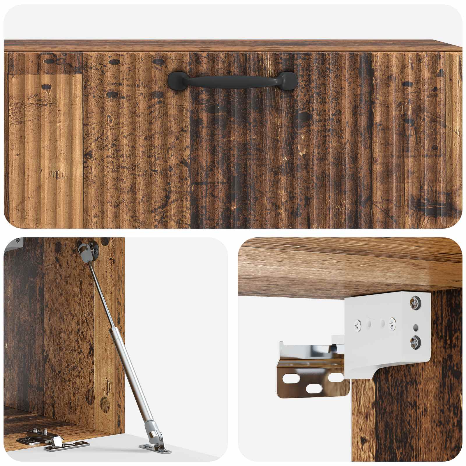 • Toiminnalliset 90° kiertosaranat: Kaapissa on kätevät 90° kiertosaranat, jotka helpottavat pääsyä säilytettävään tavaraan. Nämä ovet on rakennettu käytettäväksi helposti, säilyttäen tyylikkään ilmeen.