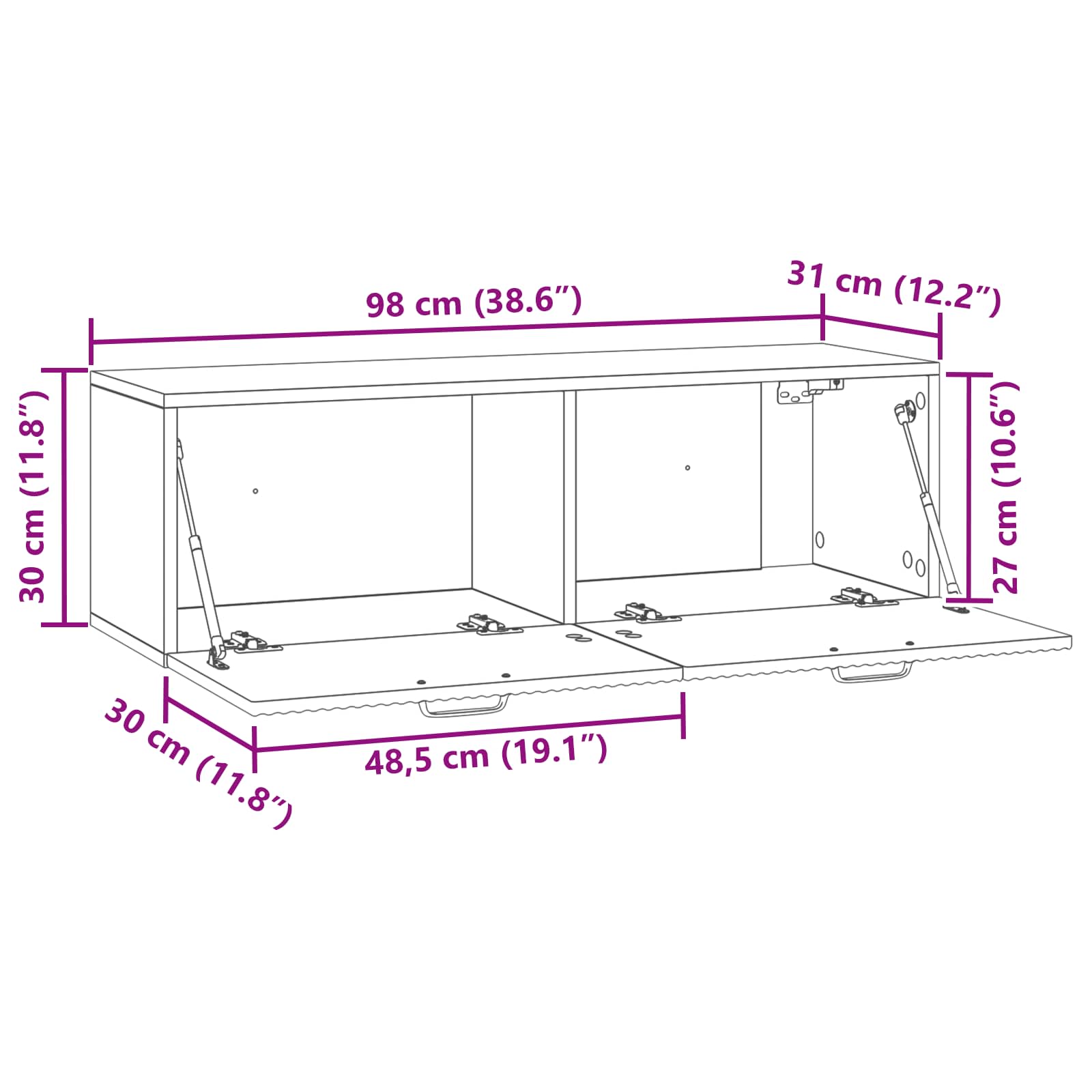 • Yleiset mitat: 98 x 31 x 30 cm (P x L x K)