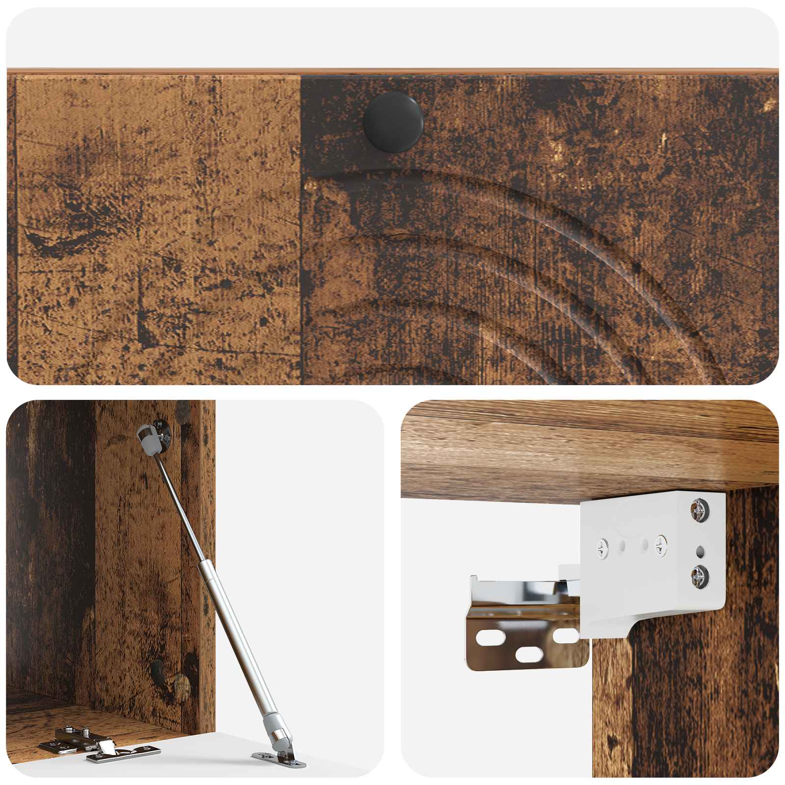 • Paketti sisältää: 90° kääntyvät saranaovet, jotka mahdollistavat helpon pääsyn sisältöön. Kestävästä puusta valmistetut ovet sulautuvat kauniisti muotoiluun. Mustat metallikahvat tuovat käytännöllisyyttä ja tyyliä.