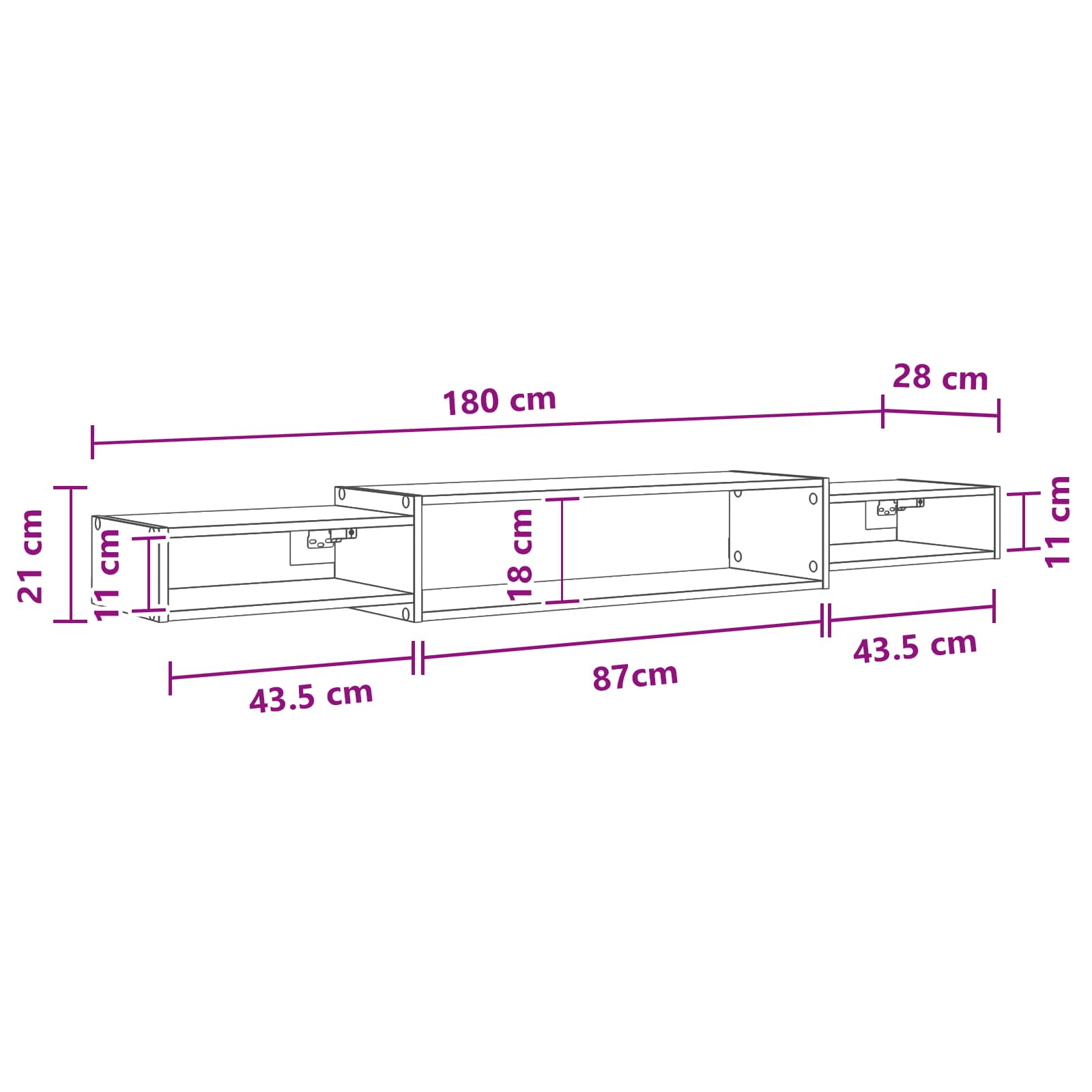 • Yleiset mitat: 180 x 28 x 21 cm (P x L x K)