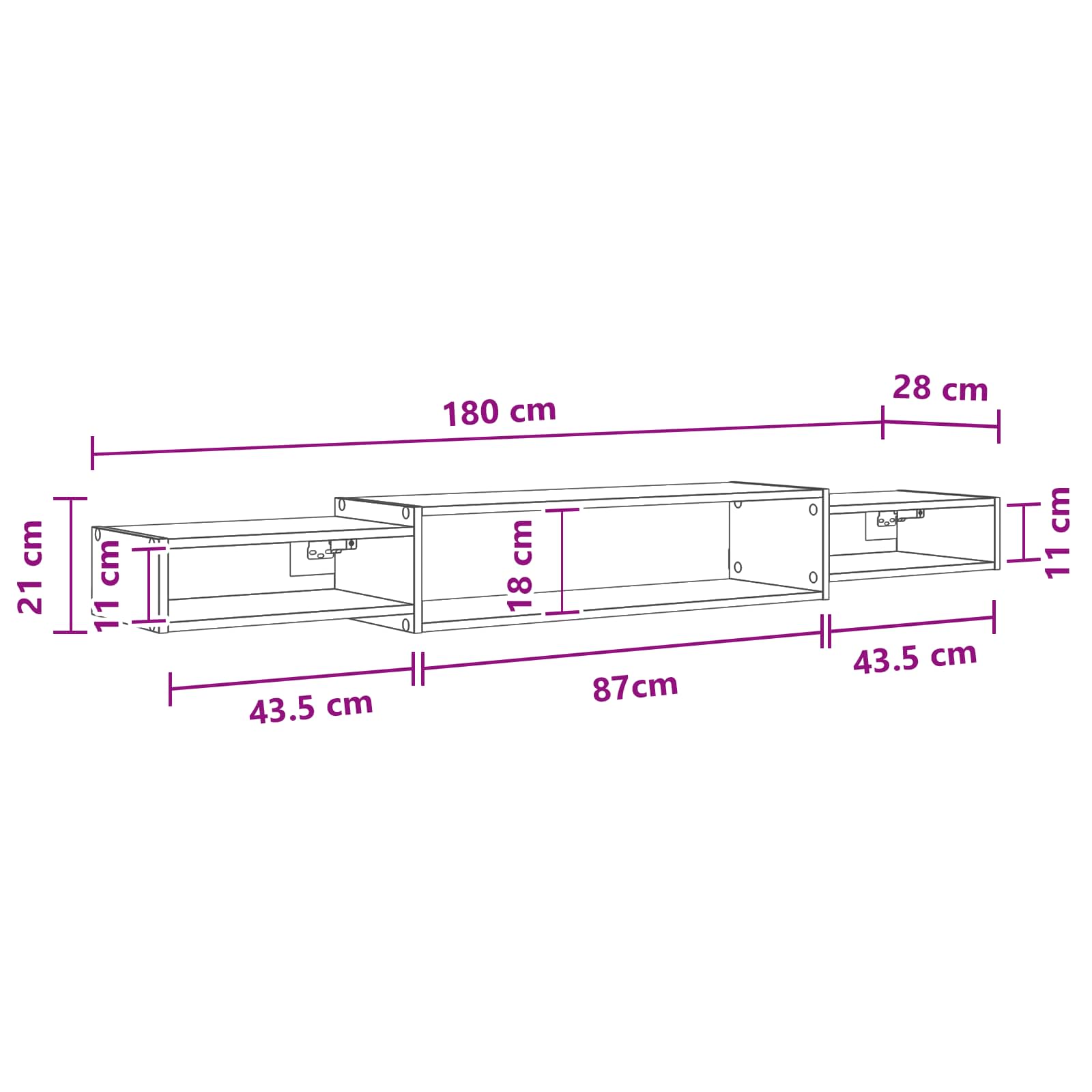 • Yleiset mitat: 180 x 28 x 21 cm (P x L x K)