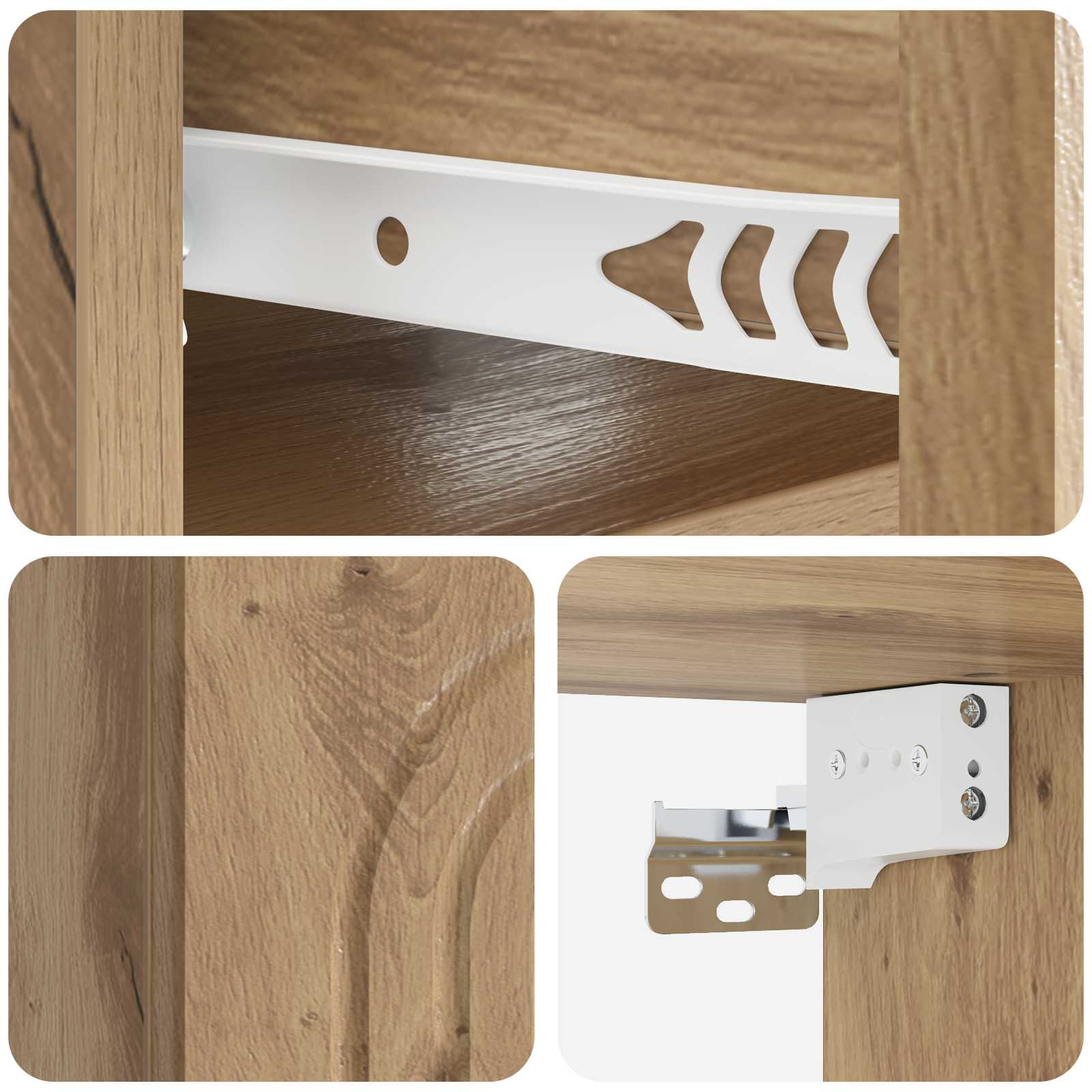• Materiaalit: Tässä kaapissa on käytetty teknistä puuta, mikä tuo esiin upeita tekstuureja ja varmistaa kauniin viimeistelyn. Materiaali takaa kestävyys ja yhdistää esteettisyyden ja käytännöllisyyden sisätiloissa.