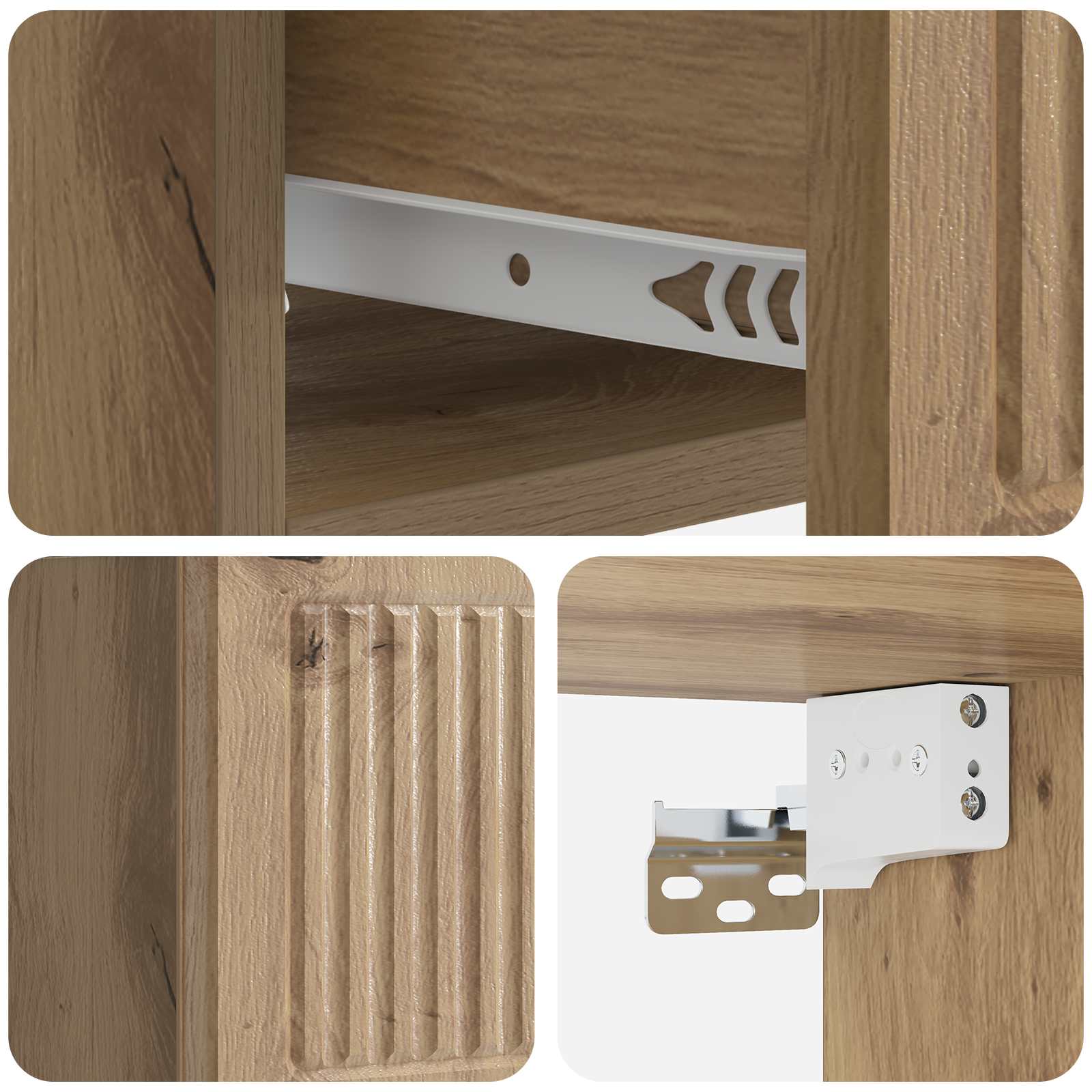 • Materiaalit: Tämä kaappi on rakennettu teknisestä puusta, ja sen matta pinta tuo vintage-tunnelmaa. Tekniselle puulle on ominaista kestävyys, joten kaappisi pysyy tyylikkäänä vuodesta toiseen.