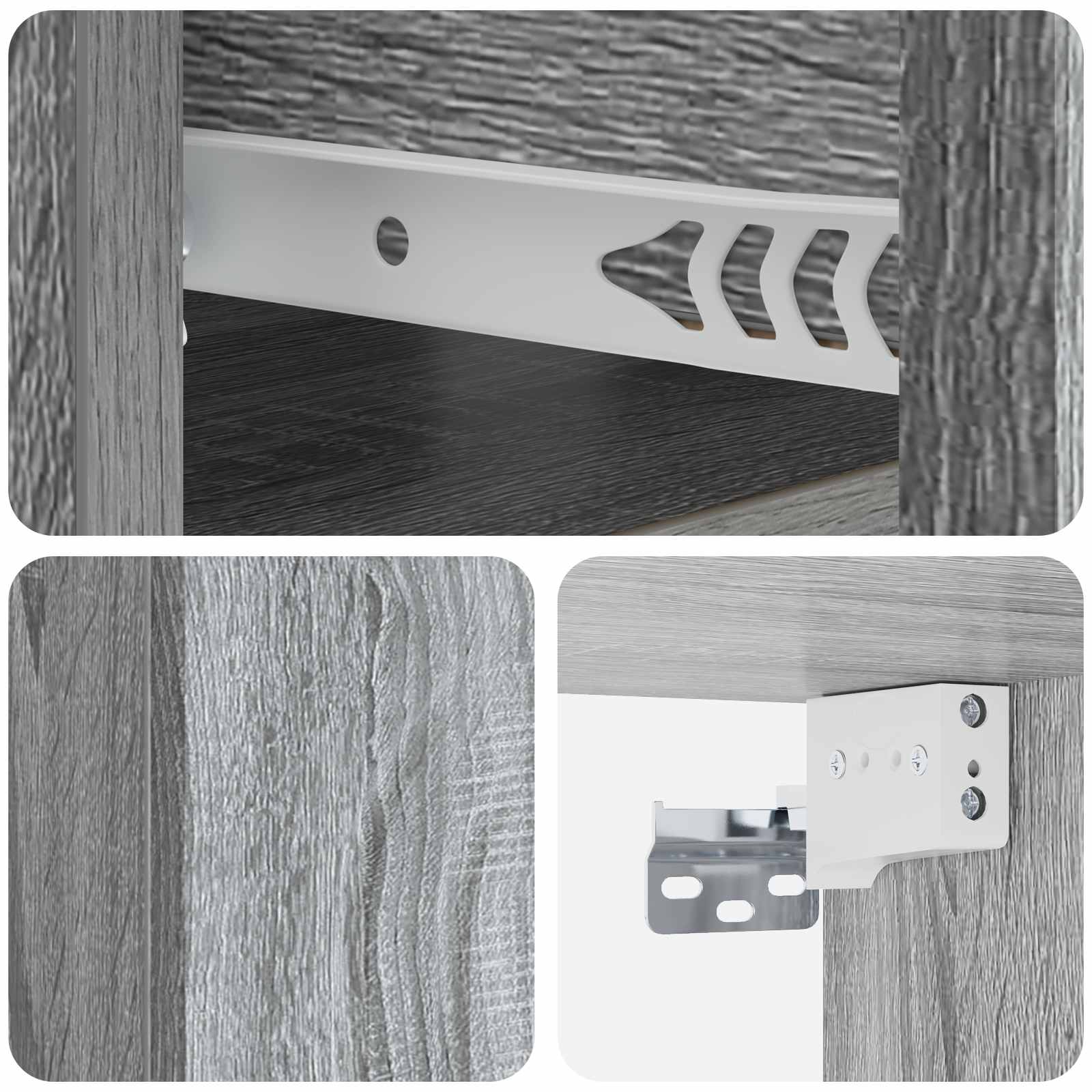 • Included components: Suunnittelussa on nupilla varustetut laatikot, jotka takaavat sujuvan käytön ja helpon pääsyn säilytettyyn tavaraan. Seinälle asennettava muoto tekee integraatiosta vaivatonta ja parantaa huoneen ilmettä.