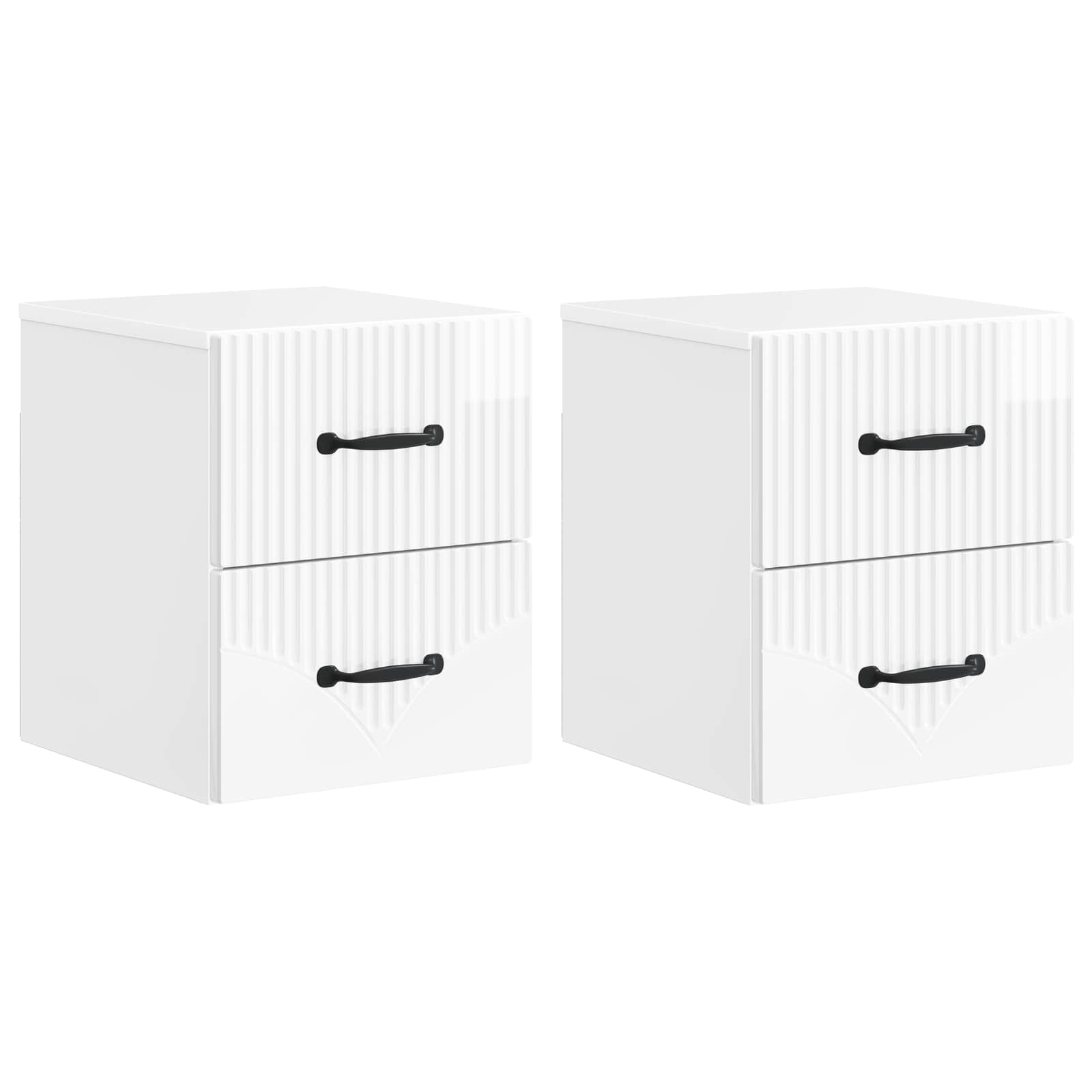 Seinälle Kiinnitettävä Yöpöytä 2 pcs Korkeakiiltoinen valkoinen