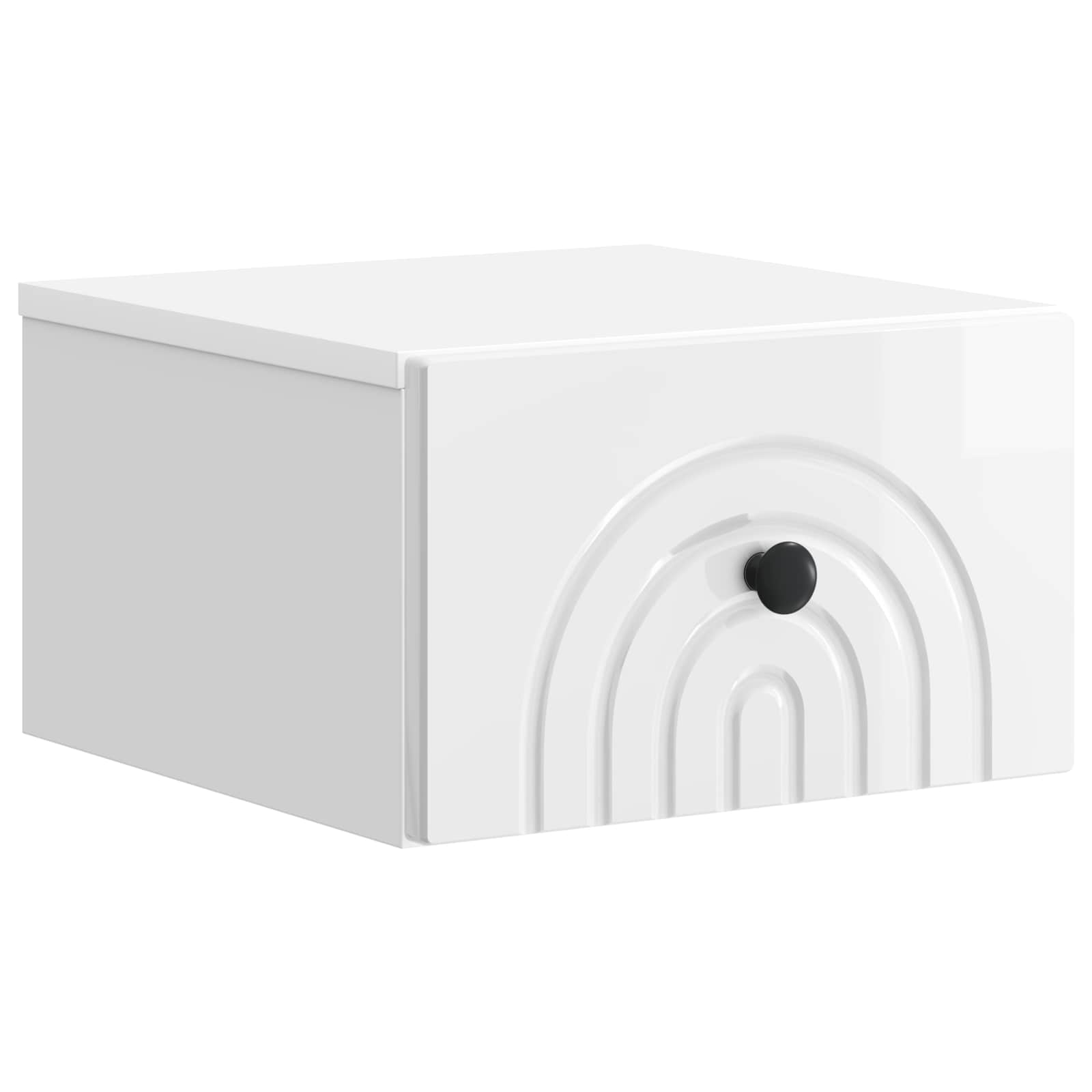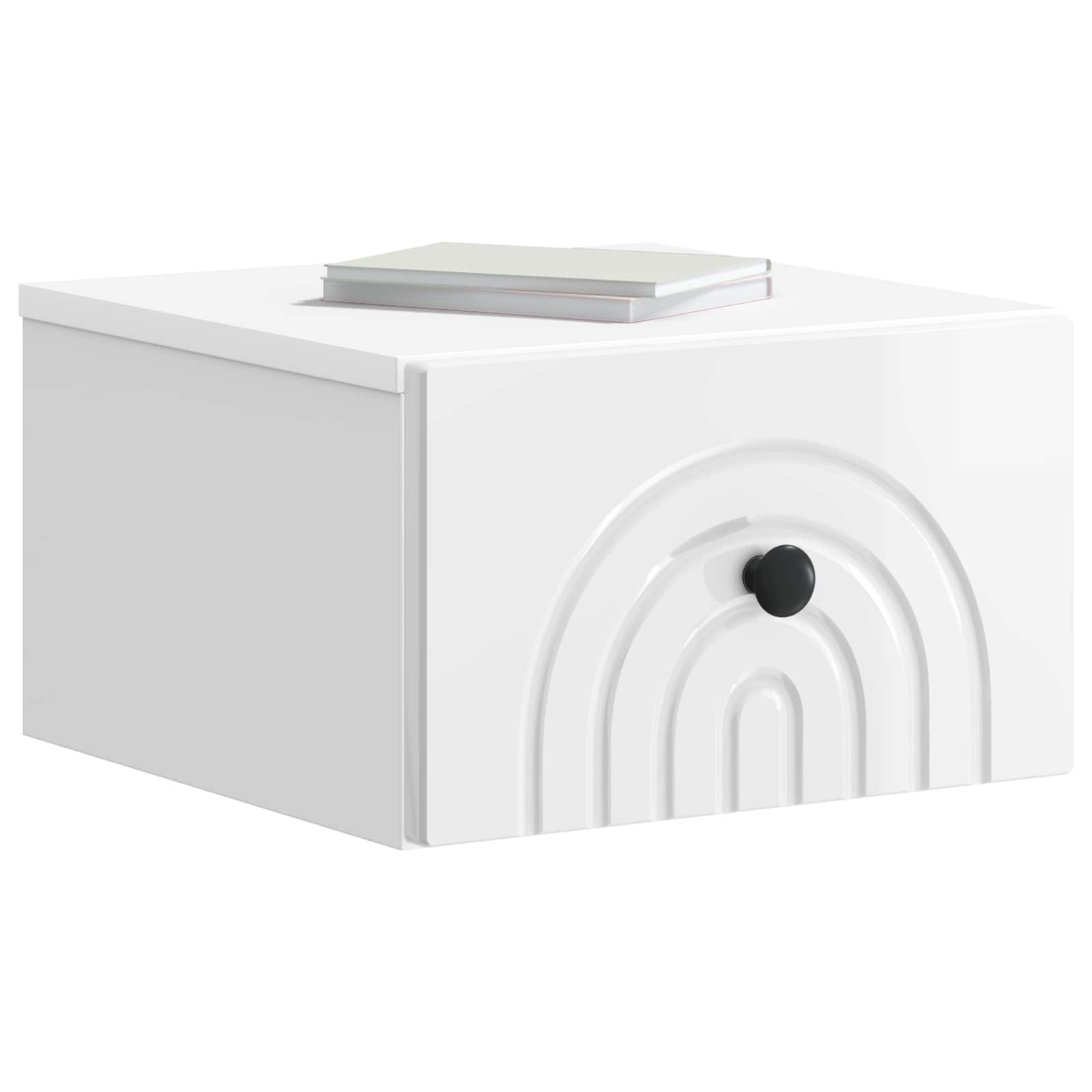 Seinälle Kiinnitettävä Yöpöytä 2 pcs Korkeakiiltoinen valkoinen