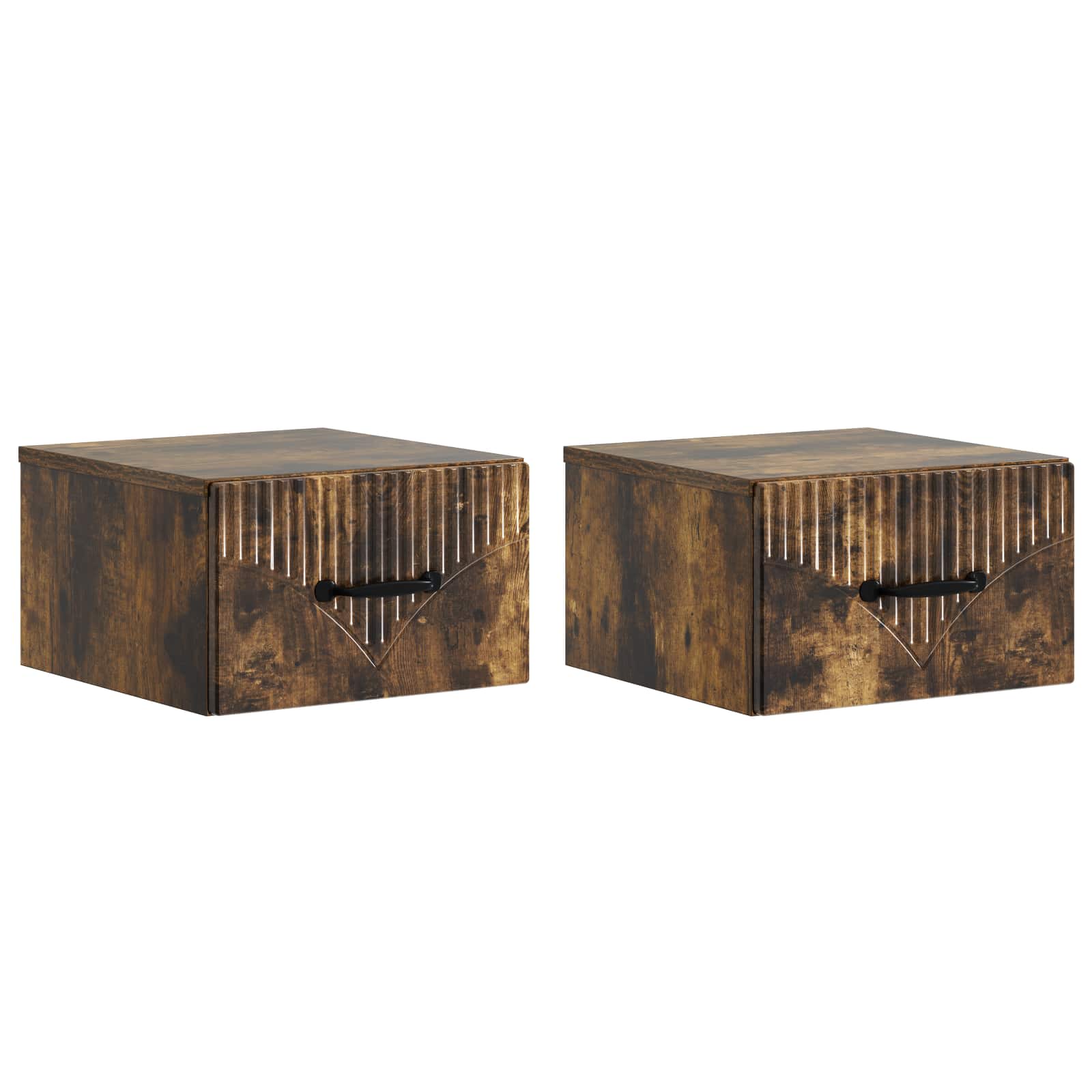 Seinälle Kiinnitettävä Yöpöytä 2 pcs Savutammi Tekninen puu