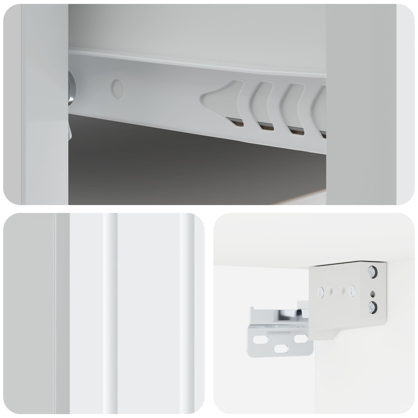 • Seinäkiinnitettävän yksinkertaisuus: Tämä rakenne säästää tilaa ilman vaivannäköä. Se antaa huoneelle virtaviivaisen ilmeen, täydellinen pienille tiloille tai minimalistisille sisustajille, jotka arvostavat eleganttia ilmettä ilman liian suurta ylimääräistä. Kaappi on tukevasti kiinnitetty, mikä takaa sen vakauden ja tuo ripauksen tyylikkyyttä sisustukseen.