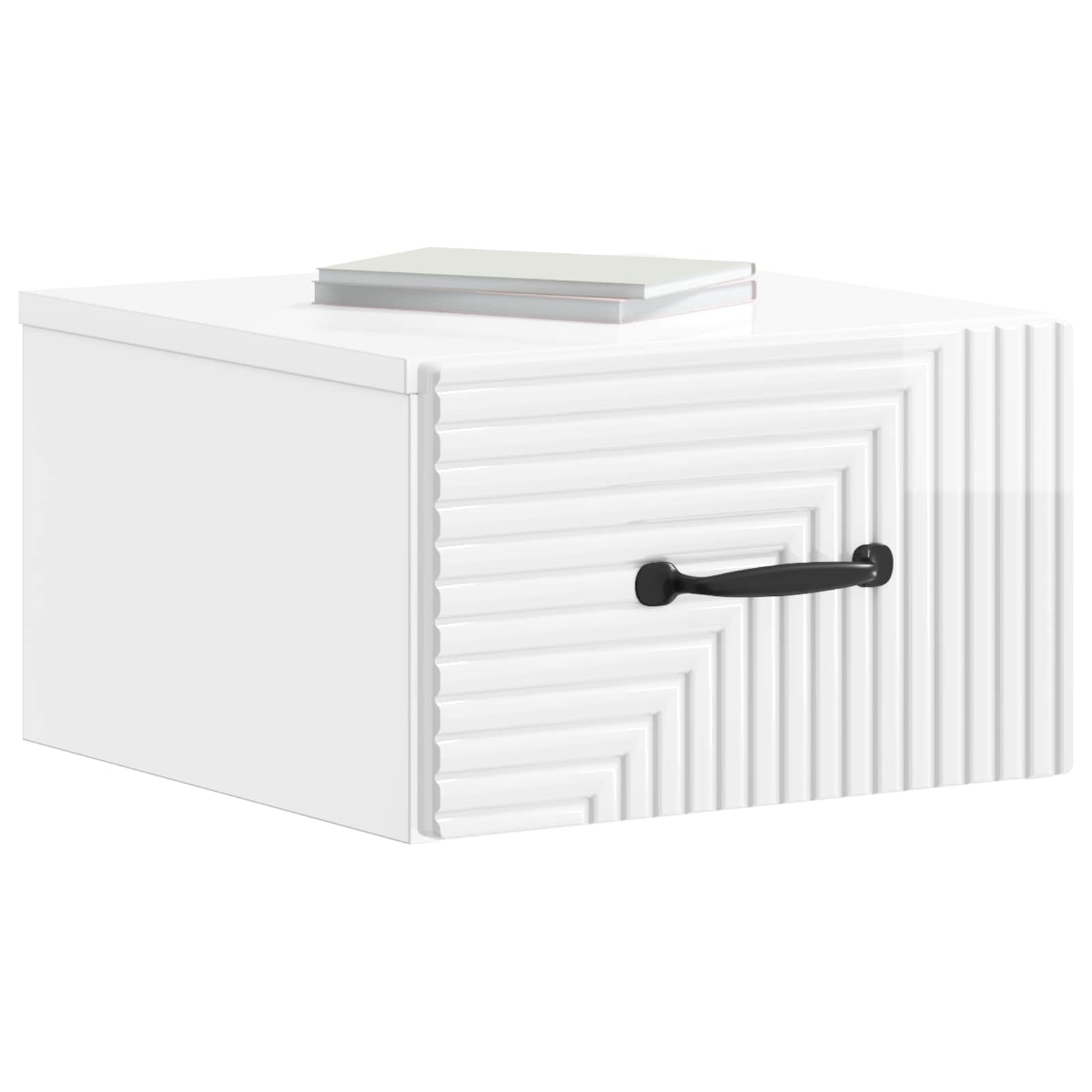 Seinälle Kiinnitettävä Yöpöytä Korkeakiiltoinen valkoinen