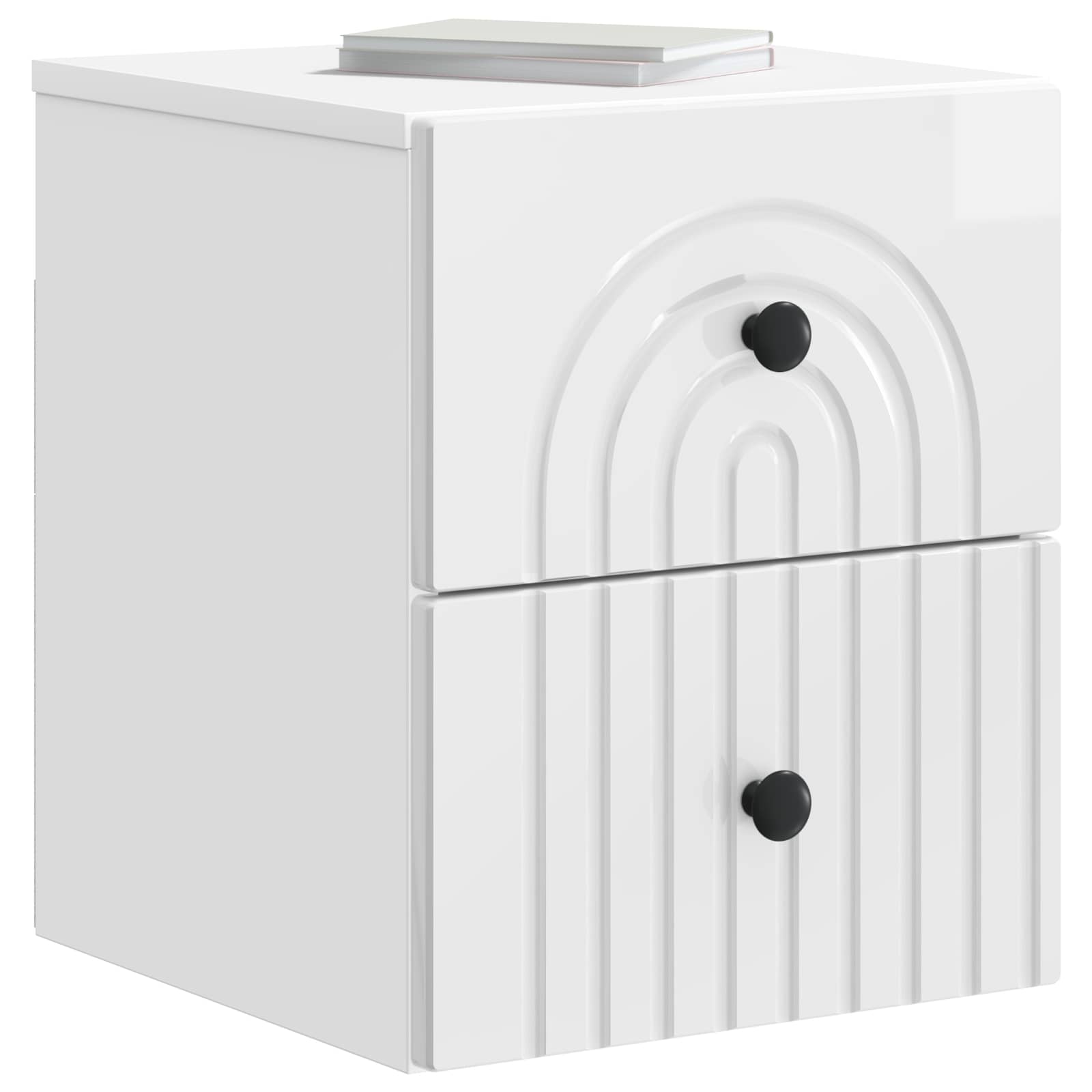 Seinälle Kiinnitettävä Yöpöytä Korkeakiiltoinen valkoinen
