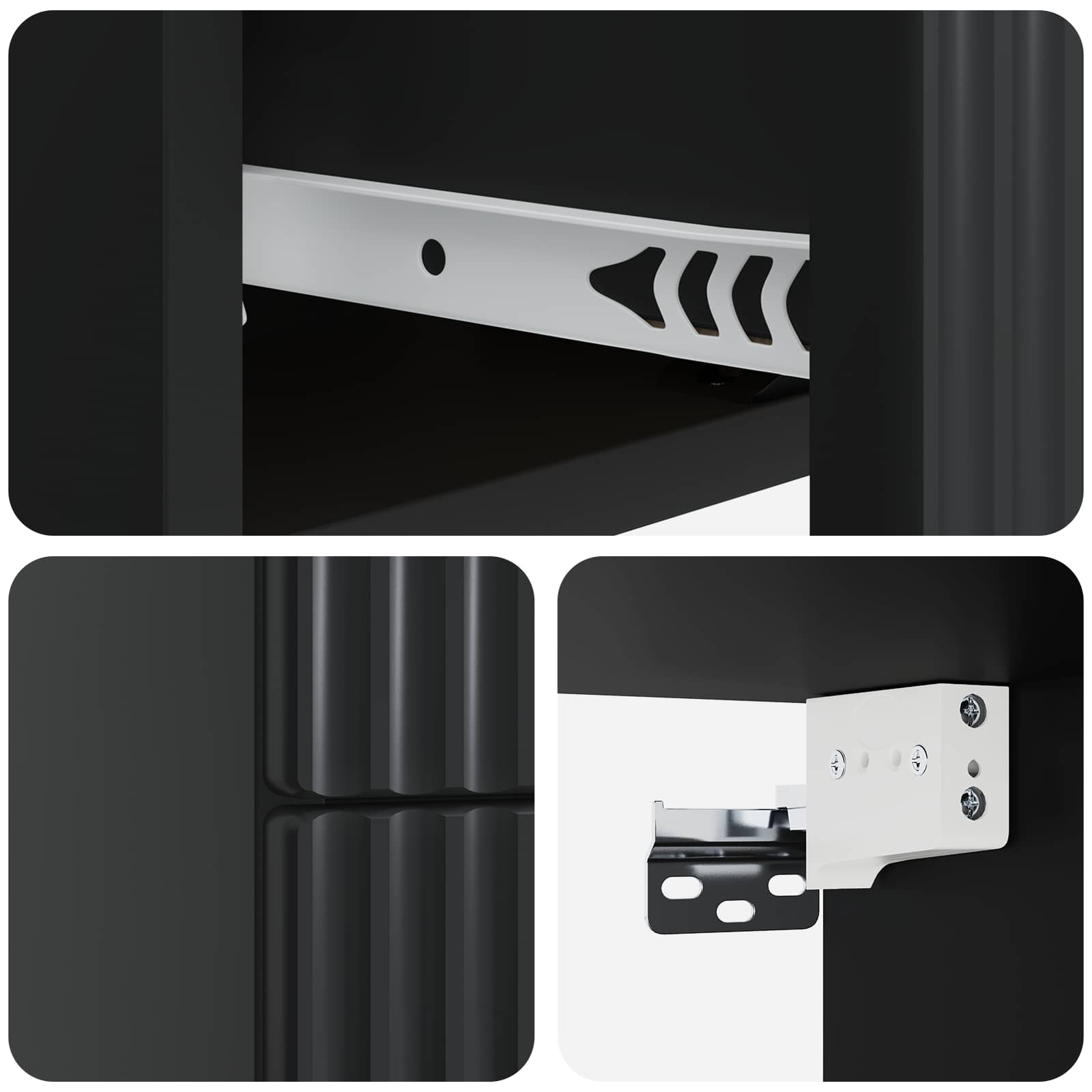 • Vaivaton kokoaminen: Kokoaminen sujuu helposti kahden henkilön avustuksella, ja vain perusvälineitä tarvitaan. Se varmistaa kaapin tukevan kiinnityksen seinään, mikä tuo mielenrauhaa.