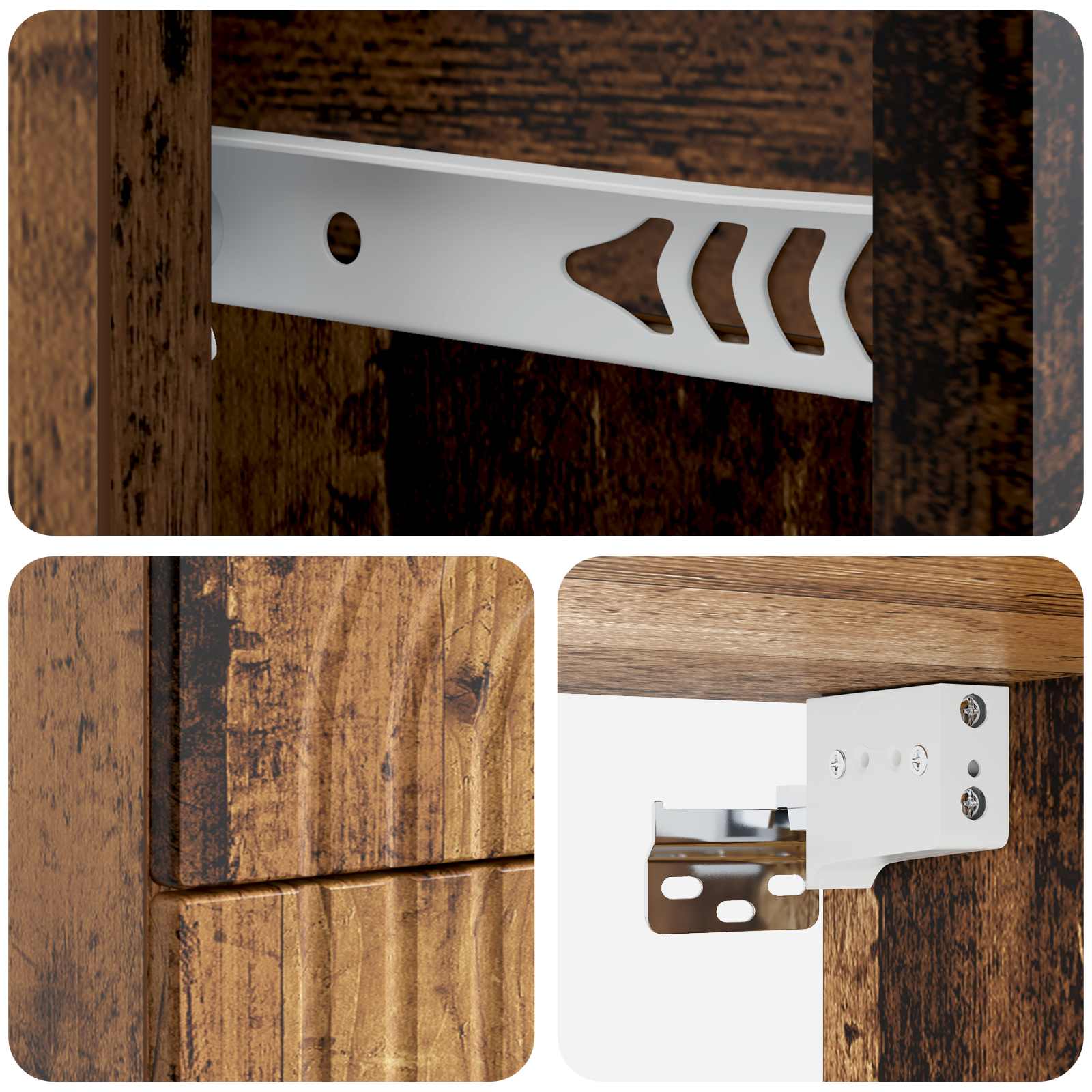 • Tekninen puu Tämä kaappi on valmistettu laadukkaasta teknisestä puusta, mikä takaa kestävän ja sileän pinnan, joka tuo esiin vintage-tyylin. Materiaali kestää hyvin käyttöä, joten se on luotettava lisä huonekalukokoelmaasi.