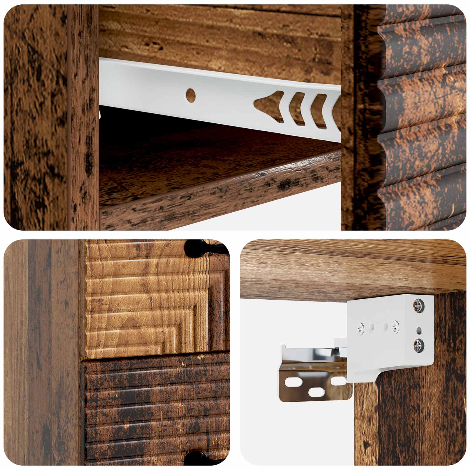 • Käytännöllinen säilytys: Useita laatikoita ja hyllyjä sisältävä yöpöytä tarjoaa monia säilytysratkaisuja. Voit säilyttää kirjoja, laitteita tai koristeita helposti ja siististi, mikä parantaa huoneen yleistä siisteyttä ja toimivuutta.