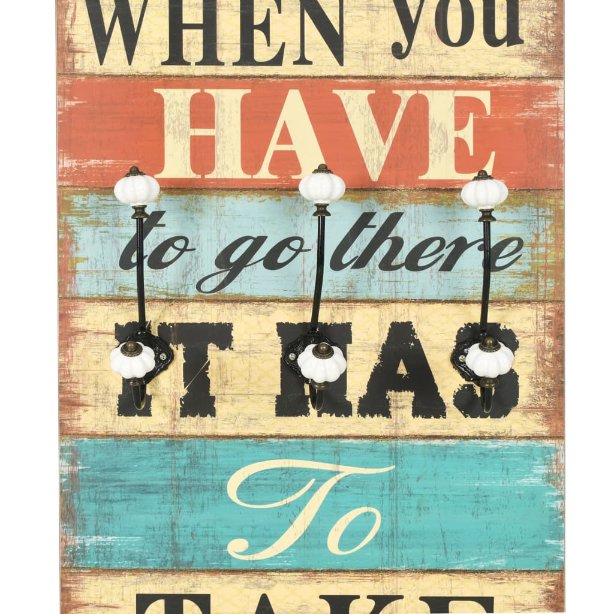Vintagetyylisessä tekstissä lukee: ”Home is the place where when you have to go there, it has to take you in.” Seinänaulakossa on kuusi koukkua, ja siitä tulee kotiisi todellinen katseenvangitsija, jonka vieraat huomaavat välittömästi.