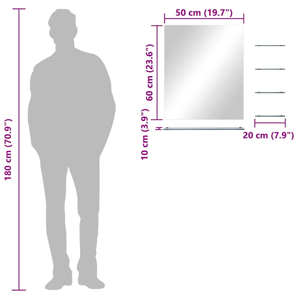 Seinäpeili hyllyillä on tyylikkäästi suunniteltu. Se tuo käytännöllisen ja koristeellisen lisäyksen kylpyhuoneeseesi, olohuoneeseesi tai makuuhuoneeseesi.