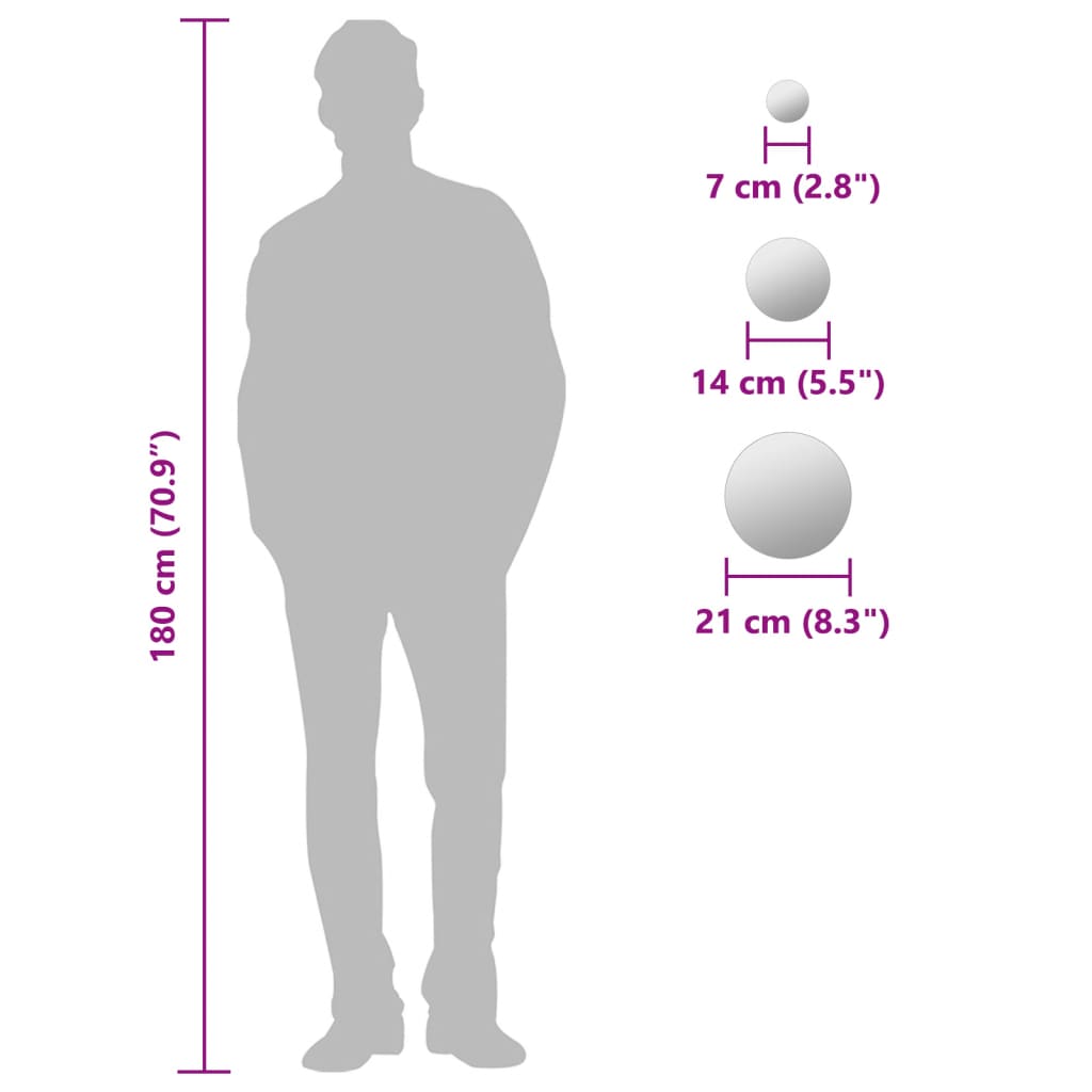• 3 x keskikokoinen peili (halkaisija: 14 cm)