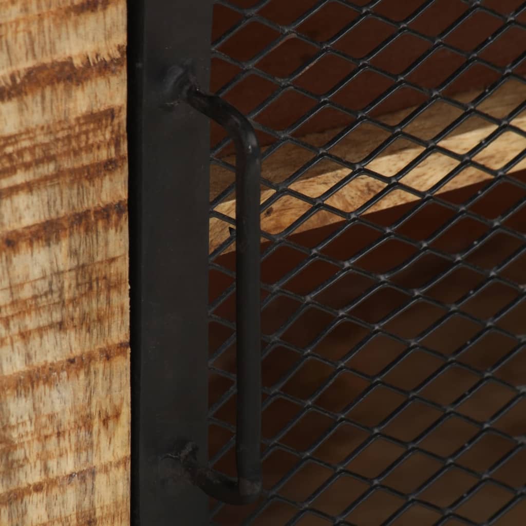 Säilytyskaappi on valmistettu käsityönä teräksestä ja täydestä karkeasta mangopuusta, mikä tekee siitä tukevan ja vakaan. Käsityötaito ja kauniit puukuviot tekevät jokaisesta huonekalusta ainutlaatuisen ja hieman erilaisen kuin muut. Lisäksi tässä sivukaapissa on runsaasti säilytystilaa tärkeiden tavaroiden järjestämiseen ja asettamiseen käden ulottuville.