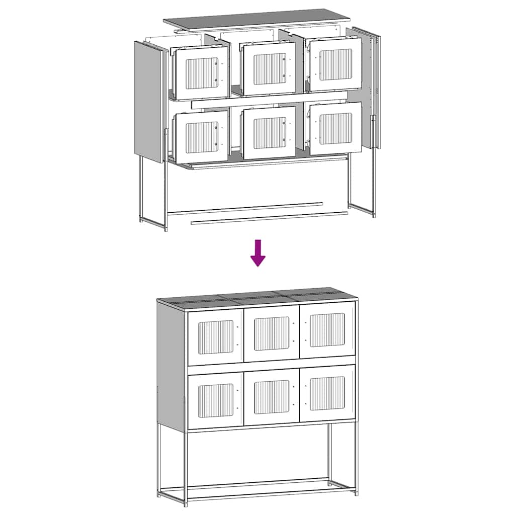 • Runsaasti säilytystilaa: Buffet tarjoaa runsaasti säilytystilaa ruokailuvälineille ja muille taloustavaroille, jotta ne pysyvät järjestyksessä ja käden ulottuvilla.