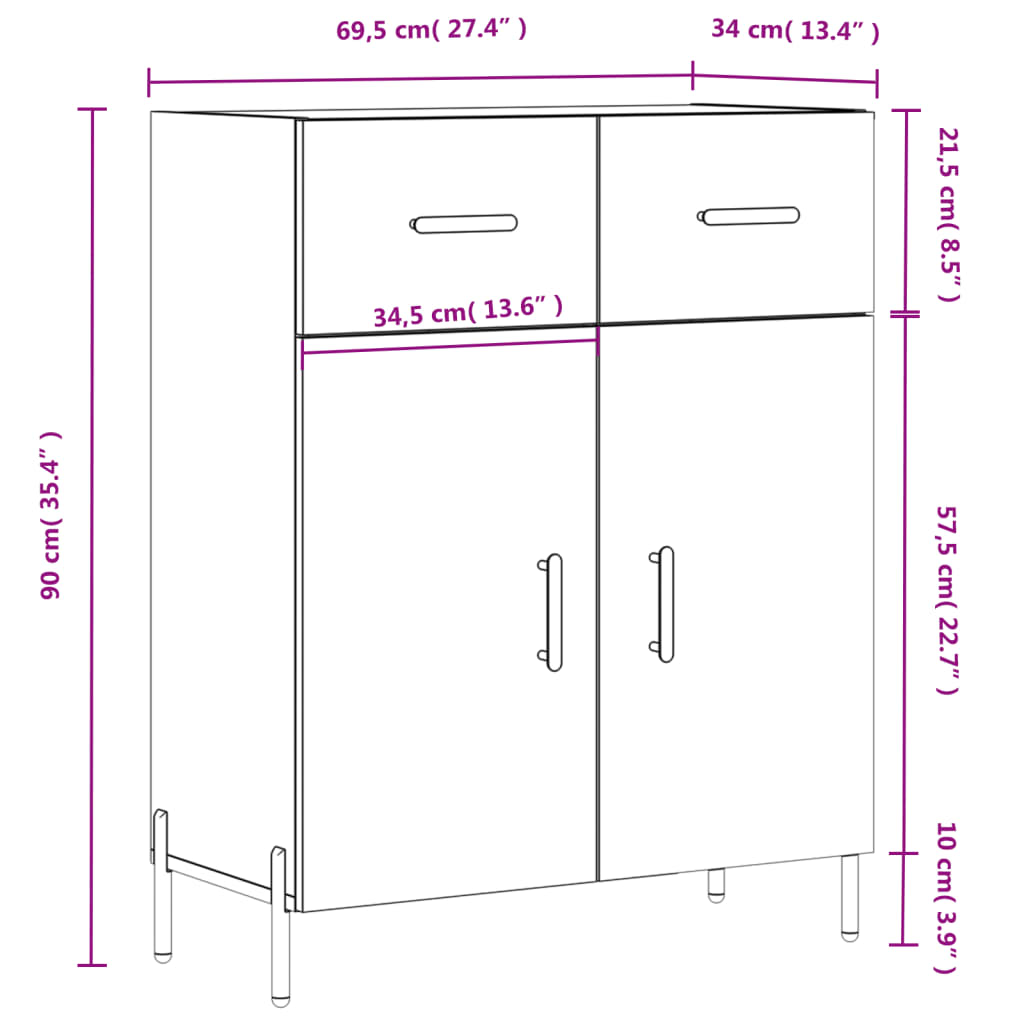 • Kokonaismitat: 69,5 x 34 x 90 cm (P x L x K)