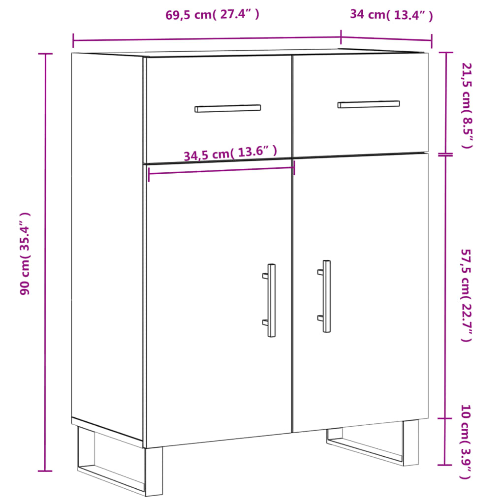 • Kokonaismitat: 69,5 x 34 x 90 cm (P x L x K)